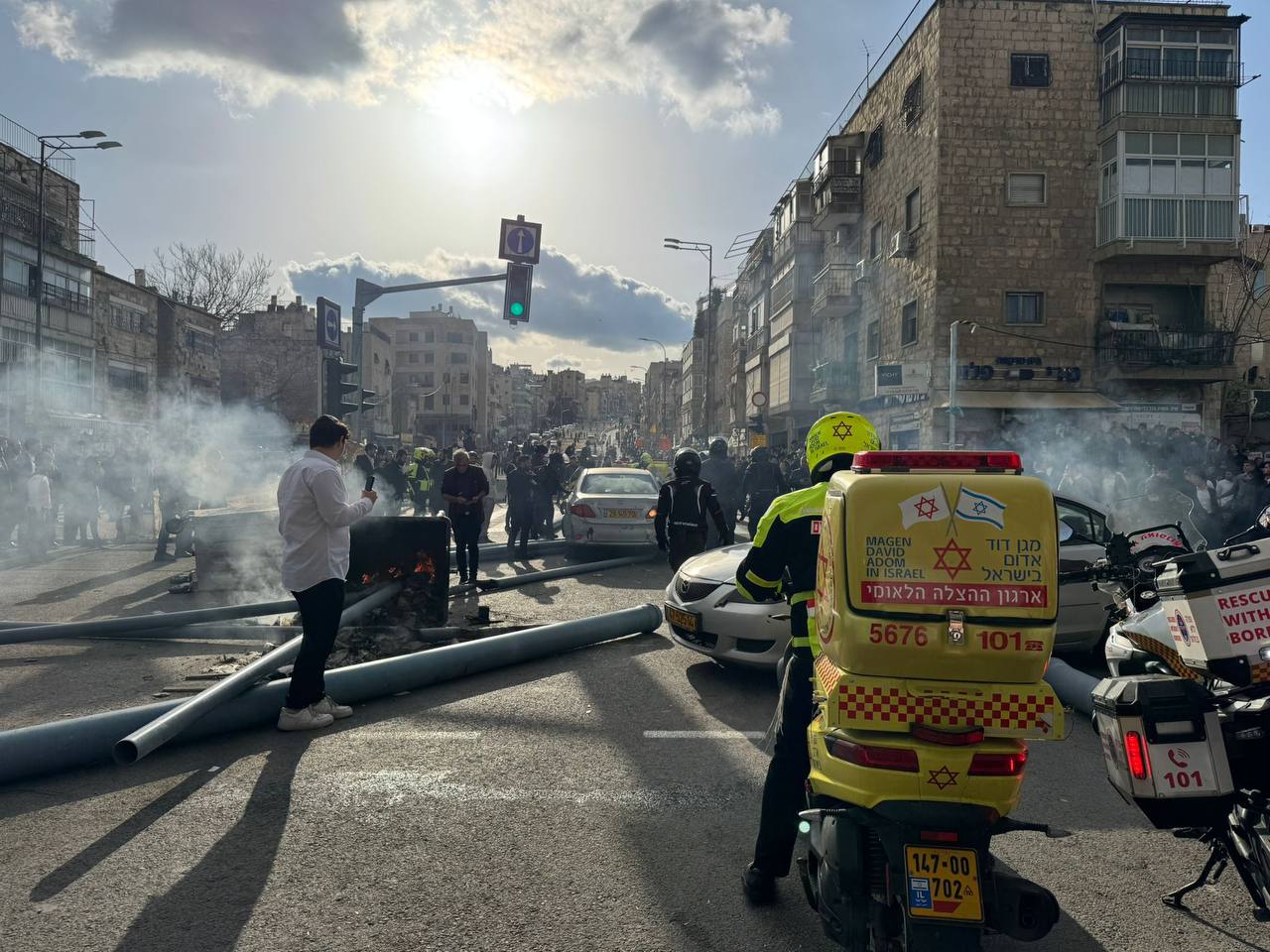 Протестующие на несколько часов перекрыли перекрёсток Шмуэль ха-Нави в Иерусалиме, поджигали мусорные контейнеры.