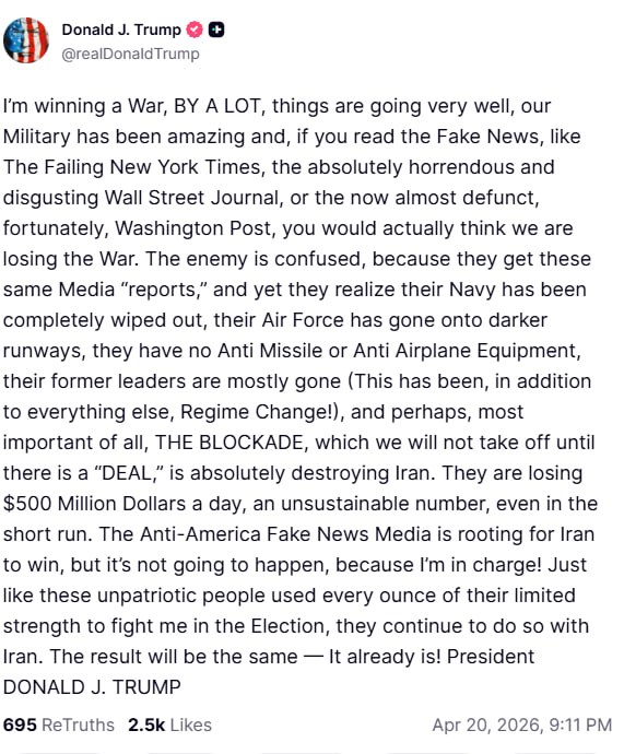 — Морская блокада: Дональд Трамп объявил, что США задержали иранское судно, пытавшееся прорвать блокаду.