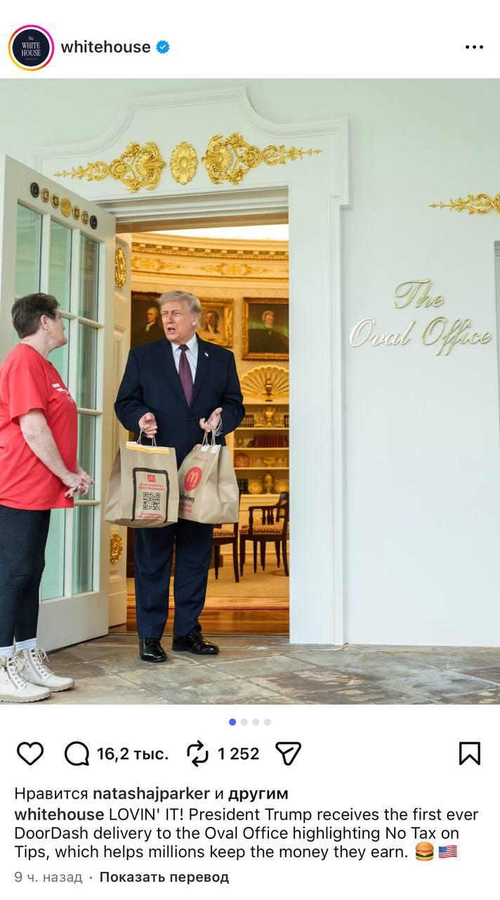 Макдоналдс и DoorDash выкупили рекламные размещения у ТРАМПА.