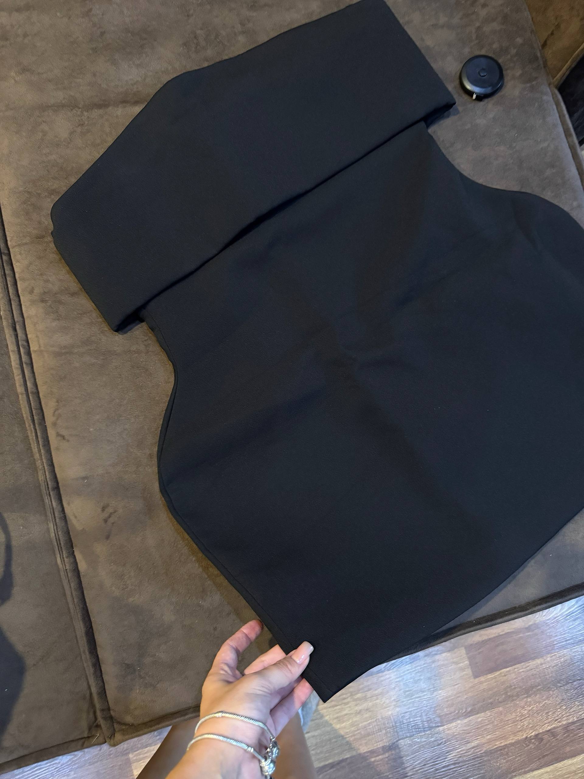 платье В ЧЕРНОМ цвете из плотной костюмной ткани, размер L (мне большое) подойдет на 48 размер Покупала за 10к, новое, отдам за 5