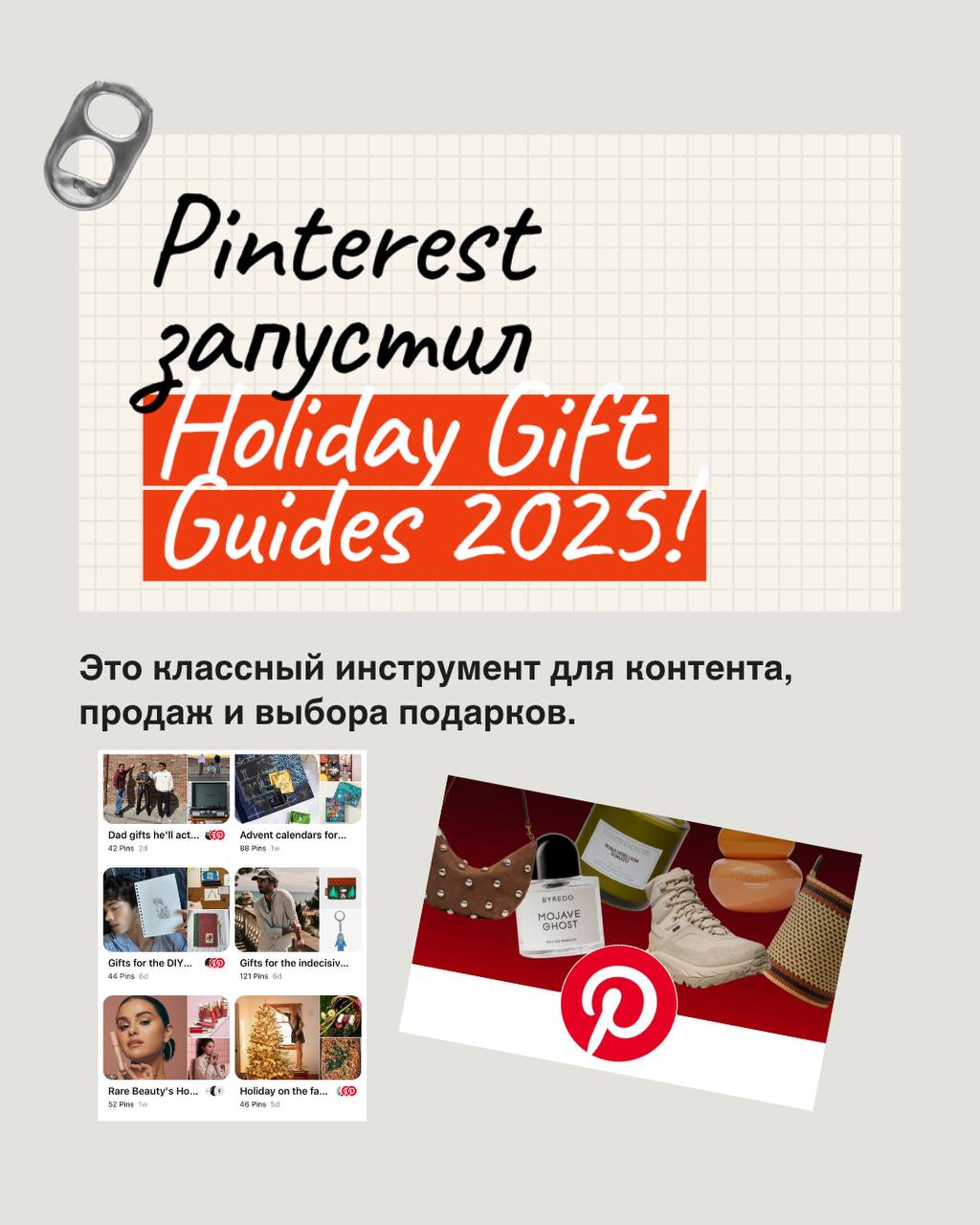 Можно делать посты и карусели «подарки из трендов Pinterest» или «подборка для ___ по данным Pinterest».