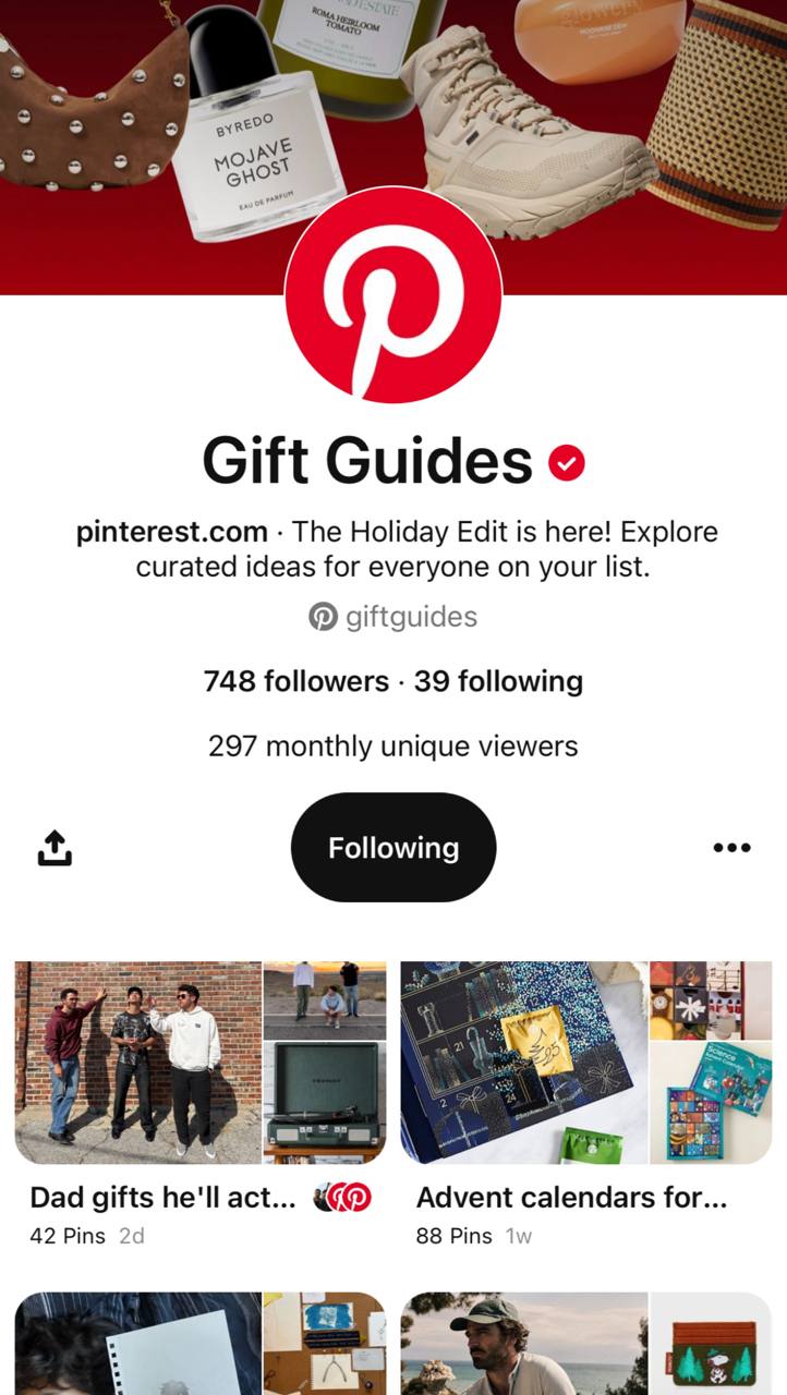 Друзья, смотрите, что выпустил Pinterest, очень удобный инструмент для выбора подарков к праздничному сезону. Платформа запустила Festive Season Edit — самую масштабную подборку подарочных гайдов: сотни списков идей в 17 категориях (мода, дом, еда, красота, путешествия, технологии, родительство и др.).