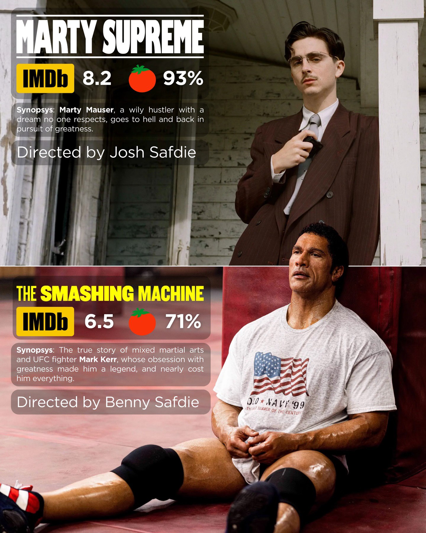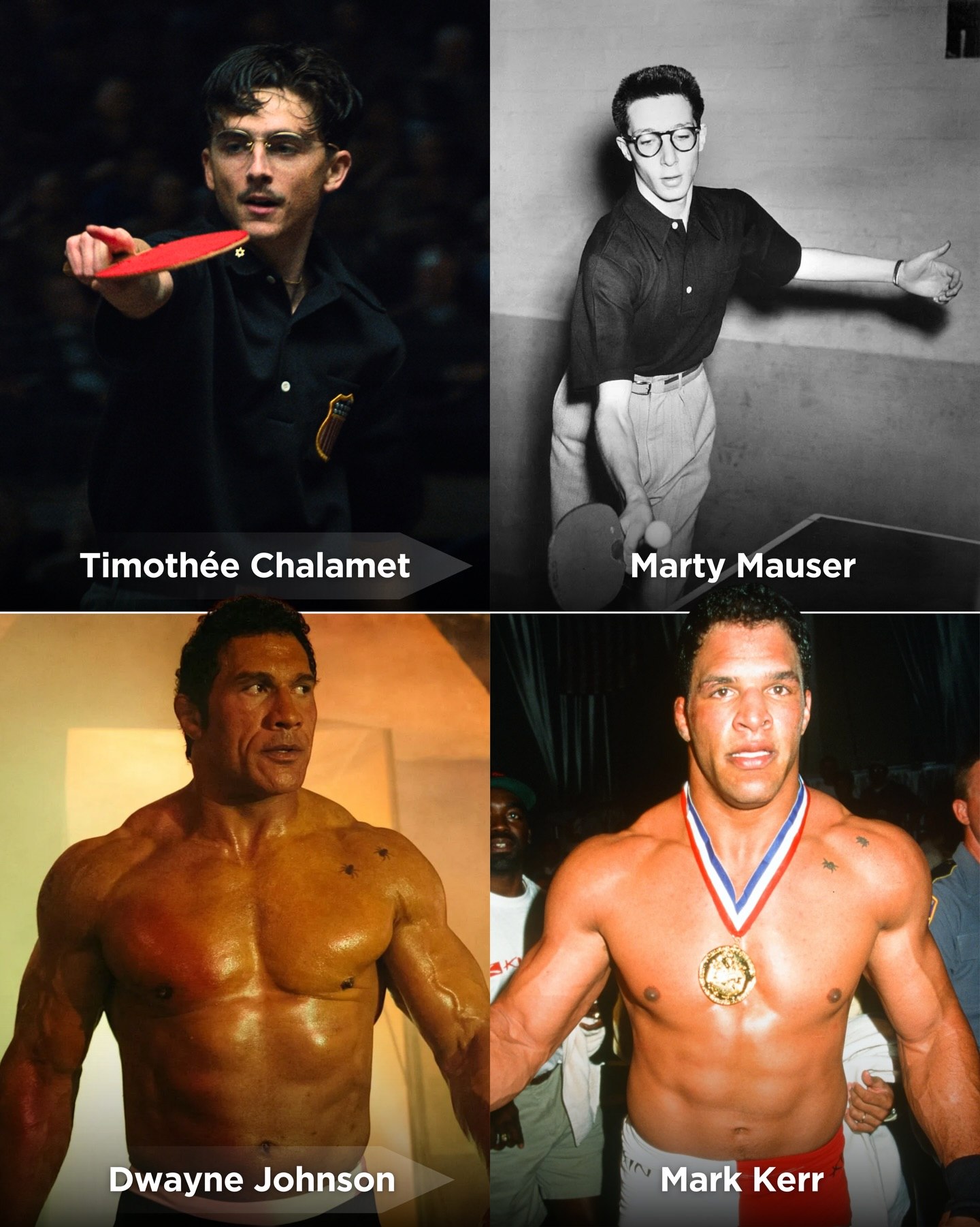 Both stories are of athletes in a sport that was not mainstream at the time. Both Timothée Chalamet and Dwayne Johnson gave Oscar-worthy performances. 🏆