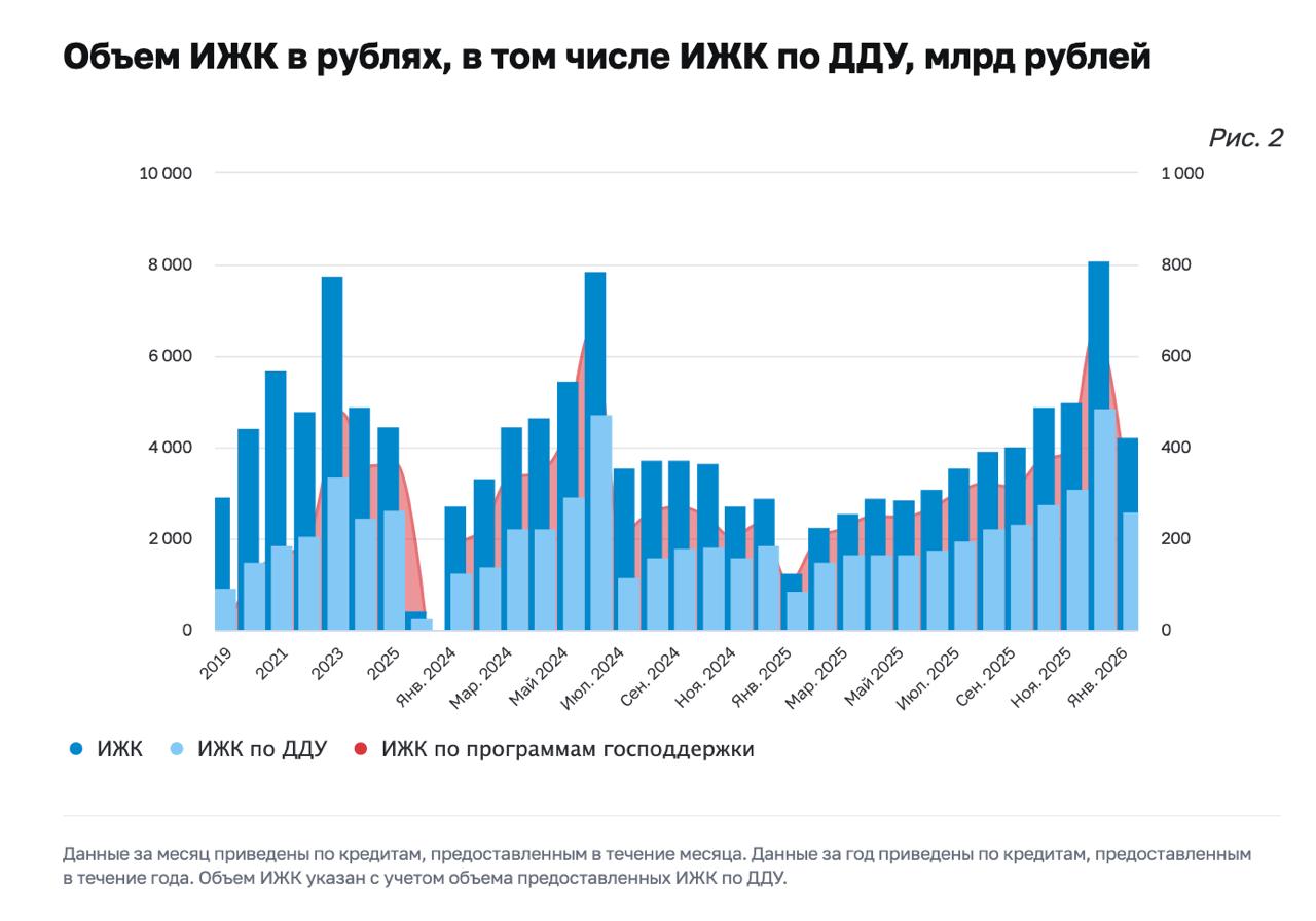 📶 ЦБ РФ отчитался по ипотеке за январь 2026 года.