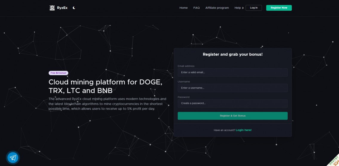 свежий приятный майнинг с условно бессрочным тарифом - от 2 до 5% ежедневно в течение 180 дней, начисления ежесекундные; за регистрацию небольшая скорость в подарок; может подойти для небольших депозитов