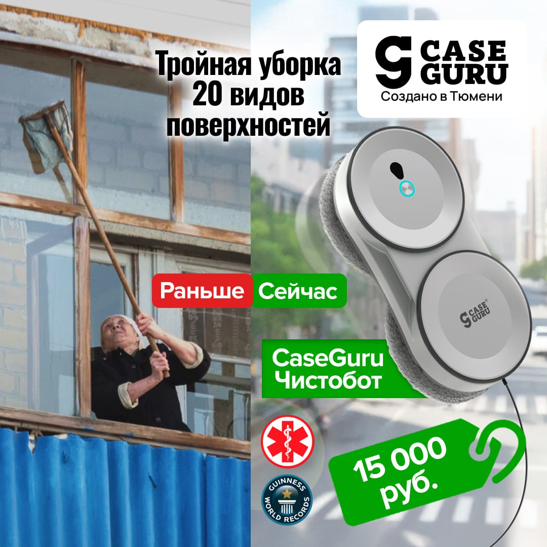 ✔️НОВИНКА! Тюменский робот-мойщик CaseGuru Чистобот — САМ моет любые гладкие поверхности, горизонтальные и вертикальные. НЕ пропускает зоны уборки и НЕ соскальзывает с поверхностей.