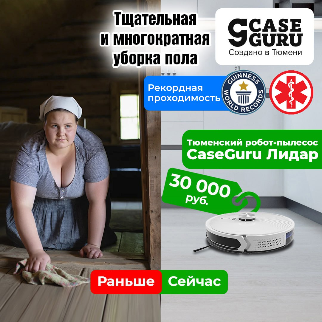 ✔️В тюменском роботе-пылесосе CaseGuru Лидар использован старинный проверенный метод многократного очищения — робот САМ выстраивает траекторию и тщательно моет каждый участок пола ТРИЖДЫ! Непрерывная чистота БЕЗ ХИМИИ.