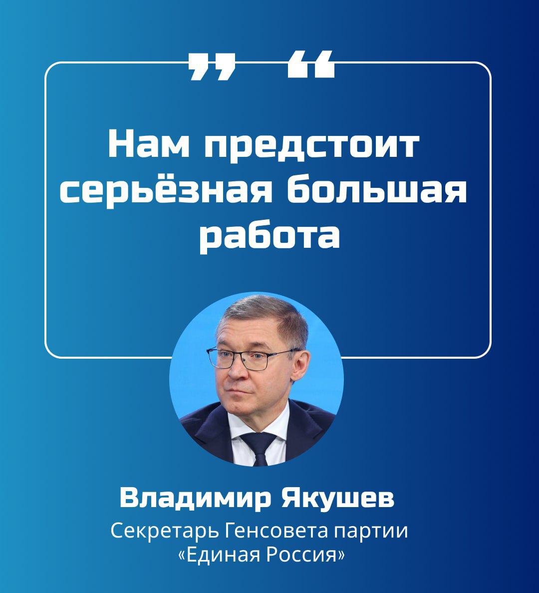 В 2026 году состоятся выборы в Госдуму РФ и также будут избираться законодательные собрания регионов и административные центры. По словам Якушева, ЕДГ-2026 — главная задача на сегодняшний день.