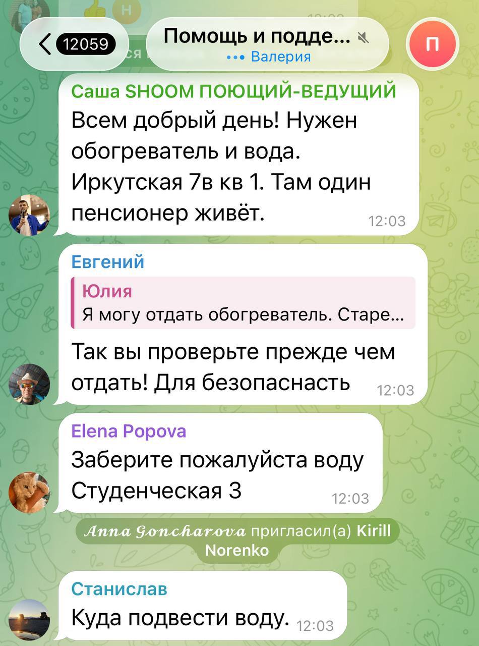 Жители Бодайбо не остались в стороне и активно включились в дело поддержки земляков в трудной ситуации. Город мгновенно сплотился: в городе создали чат взаимопомощи, где предлагают друг другу все, что может понадобиться: воду, одеяла, теплую одежду и горячую еду, таксисты бесплатно перевозят тех, кто нуждается, а местные хозяйки готовят еду для рабочих, устраняющих аварию. Активно в этом участвуют представители администрации и местные депутаты: снабжают людей всем необходимым, делают поквартирный обход.