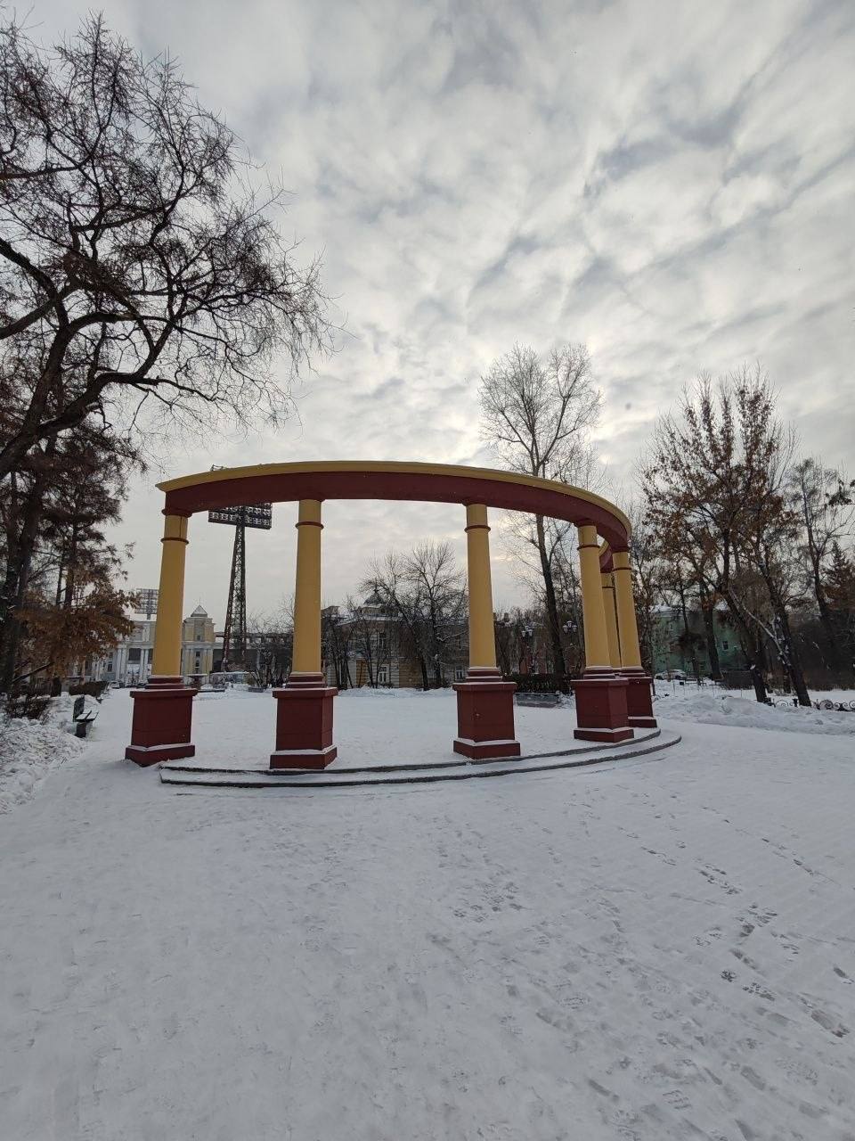 • Сквер у драмтеатра — колонны, настил, фонари, скамейки