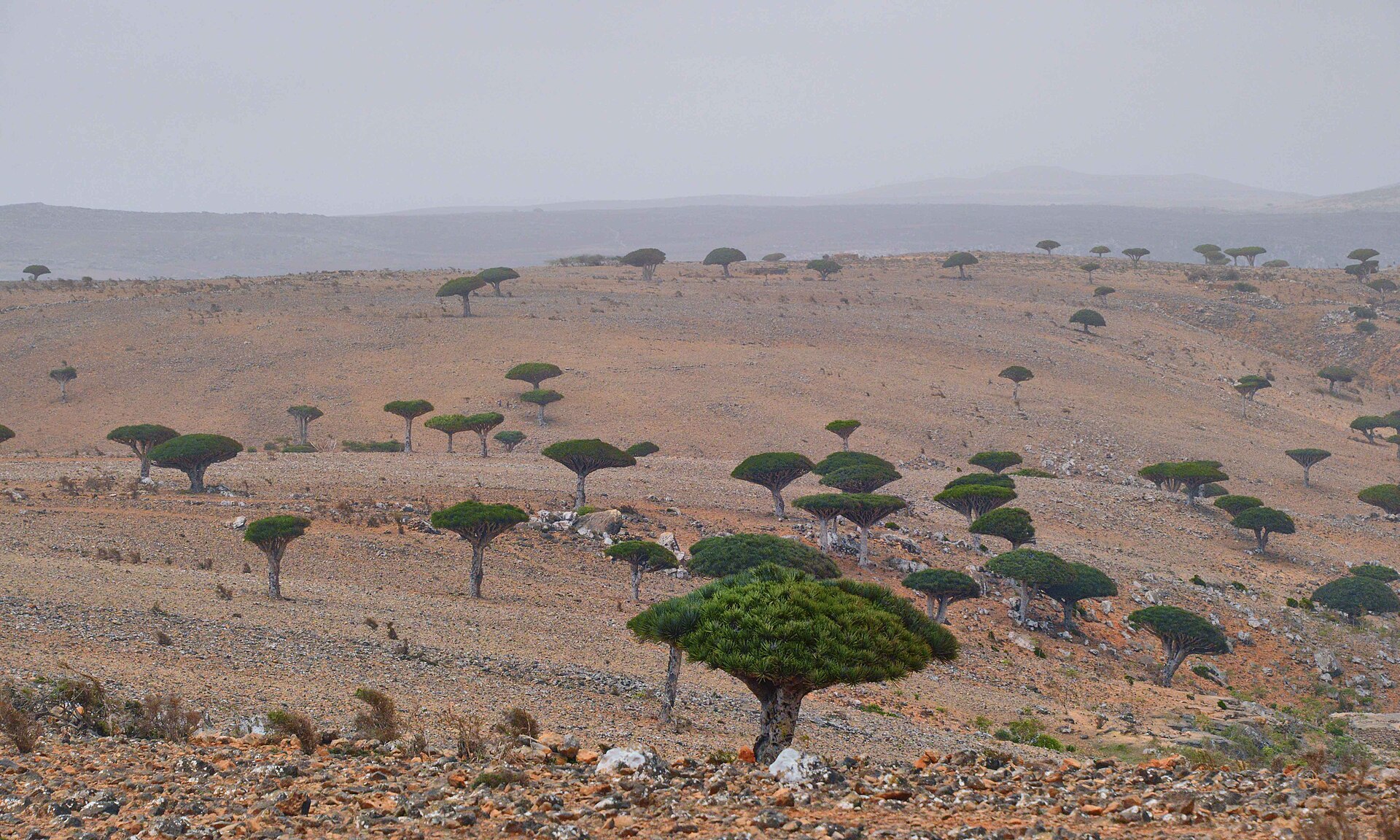 На фото многочисленные драконовы деревья на Сокотре. Авторство: Rod Waddington