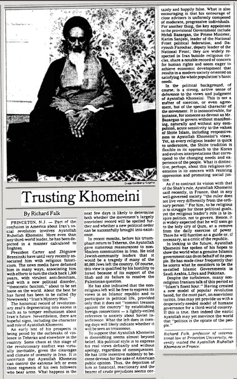 Оказывается, все еще жив Ричард Фальк - автор знаменитой статьи «Доверяя Хомейни» в New York Times.