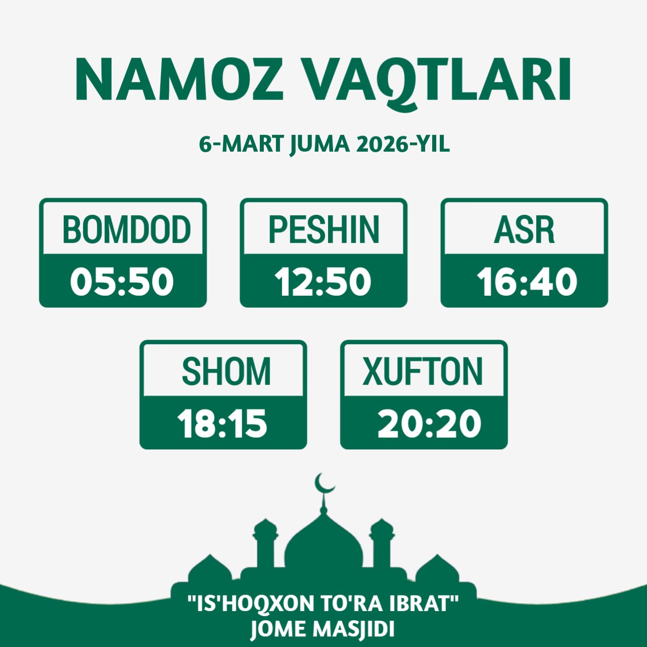 🌟 Қадрли диндошим! Жума айёмингиз муборак бўлсин!