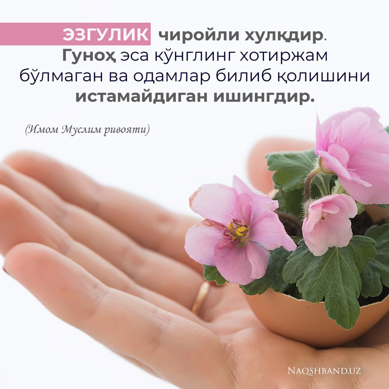 Шарҳ: Демак, инсонларга чиройли хулқ билан муомалада бўлиш - бу одамийлик зийнати экан. Шу хусусда Ҳазрати Пайғамбаримиз соллаллоҳу алайҳи васалламдан "Амалларнинг қай бири афзалроқ?" деб сўраганда, ул зот: "Чиройли хулқ", дедилар. Бошқа бир Ҳадиси шарифларида Расулуллоҳ соллаллоҳу алайҳи васаллам: "Албатта, Аллоҳ таоло яратилишингизни чиройли қилиб қўйган кишиларсиз, энди хулқингизни ҳам чиройли қилинглар" дедилар.