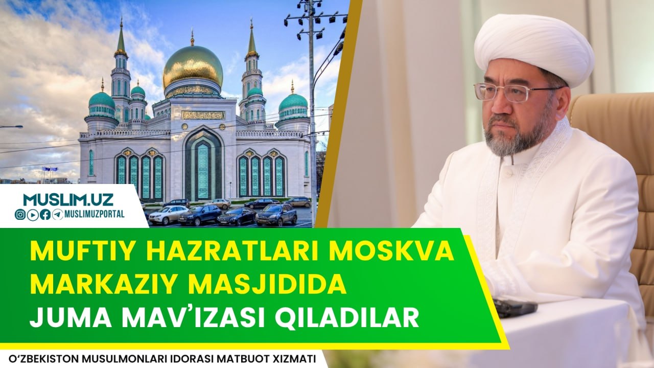 ✅Бугун, 17 апрель куни Ўзбекистон мусулмонлари идораси раиси, муфтий Шайх Нуриддин Холиқназар ҳазратлари хориж сафари мобайнида Москва жоме масжидида жума намозидан аввал жамоатга “Ҳалол меҳнат – мўминнинг зийнати” мавзусида гўзал суҳбат қилиб бердилар.