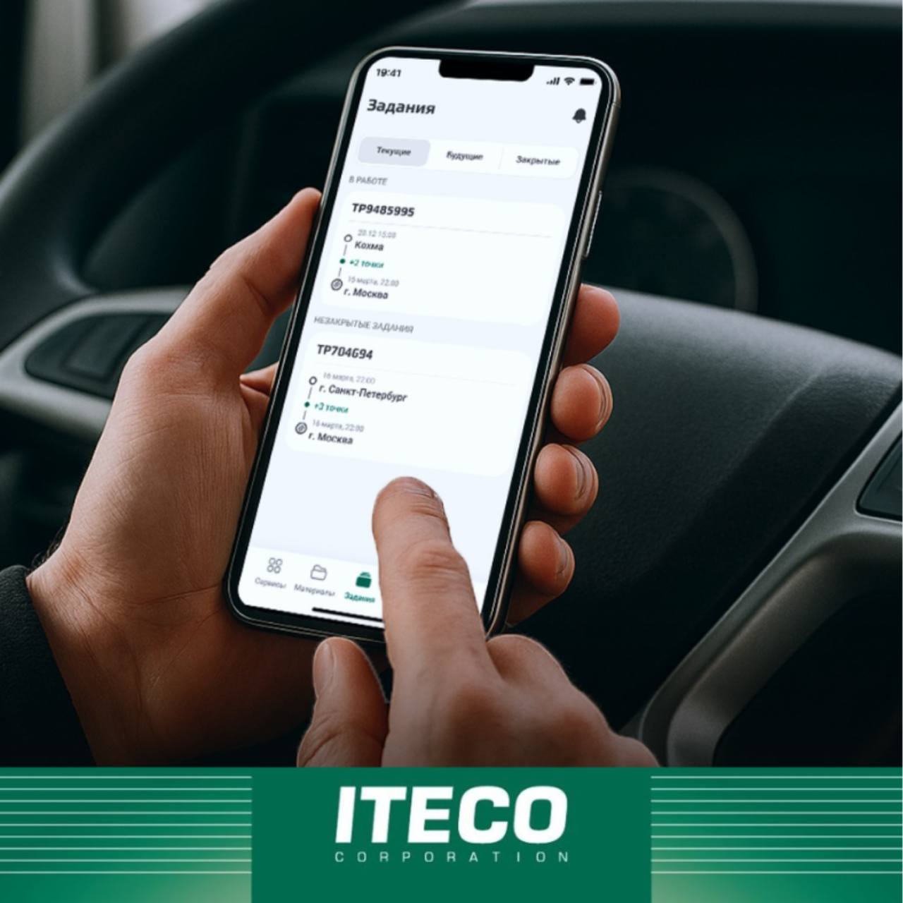 Приложение ITECO.Водитель позволяет водителям работать с ключевой информацией даже без подключения к сети. Все ранее загруженные данные сохраняются и остаются доступными — к ним можно вернуться в любой момент в пути.