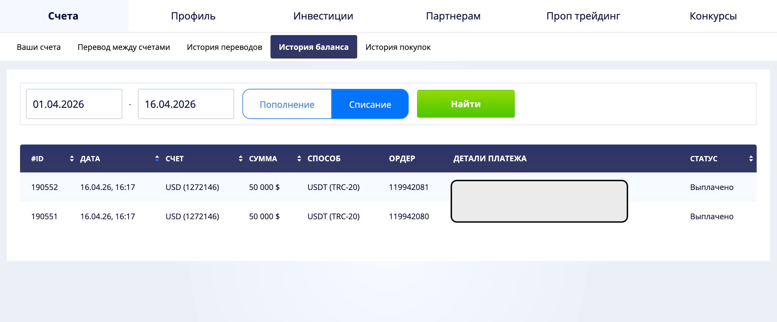 Источник вывода средств: USDT TRC-20