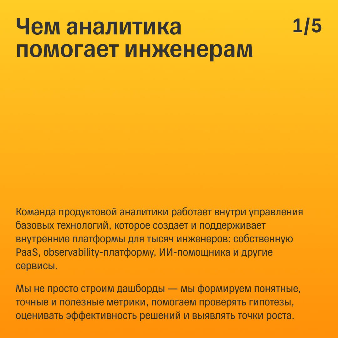 🙂 Как команда продуктовой аналитики помогает проверять гипотезы, оценивать эффективность решений и выявлять точки роста — рассказала Анна Громова, руководитель продуктовой аналитики в управлении базовых технологий.