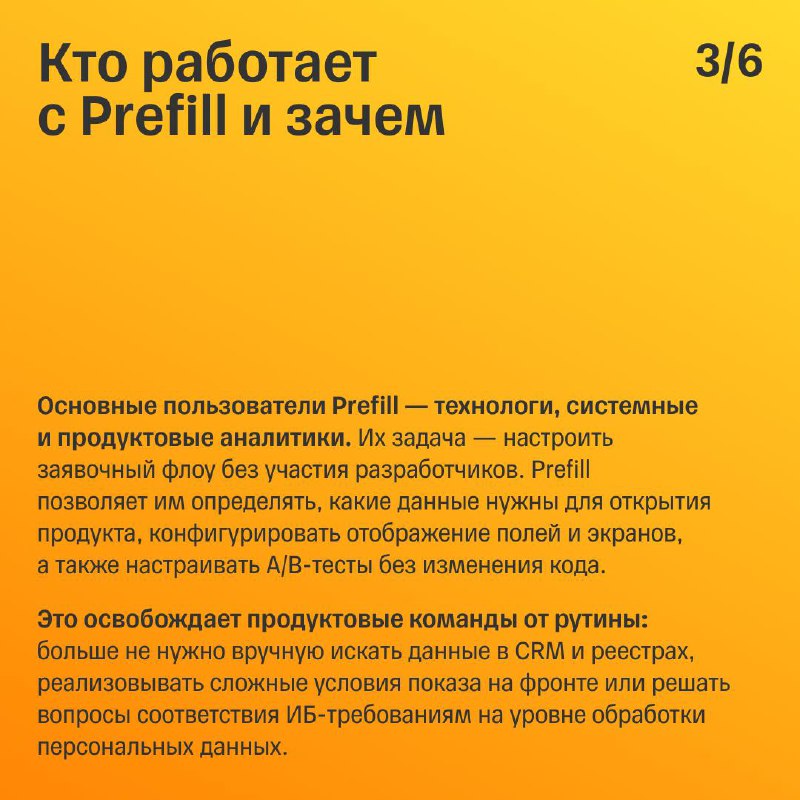 📚 Мы построили сервис Prefill, который динамически решает, какие данные запрашивать, а какие нет, потому что они уже есть. В карточках рассказываем, как он работает без релизов, масштабируется на десятки продуктов и помогает не дублировать логику.