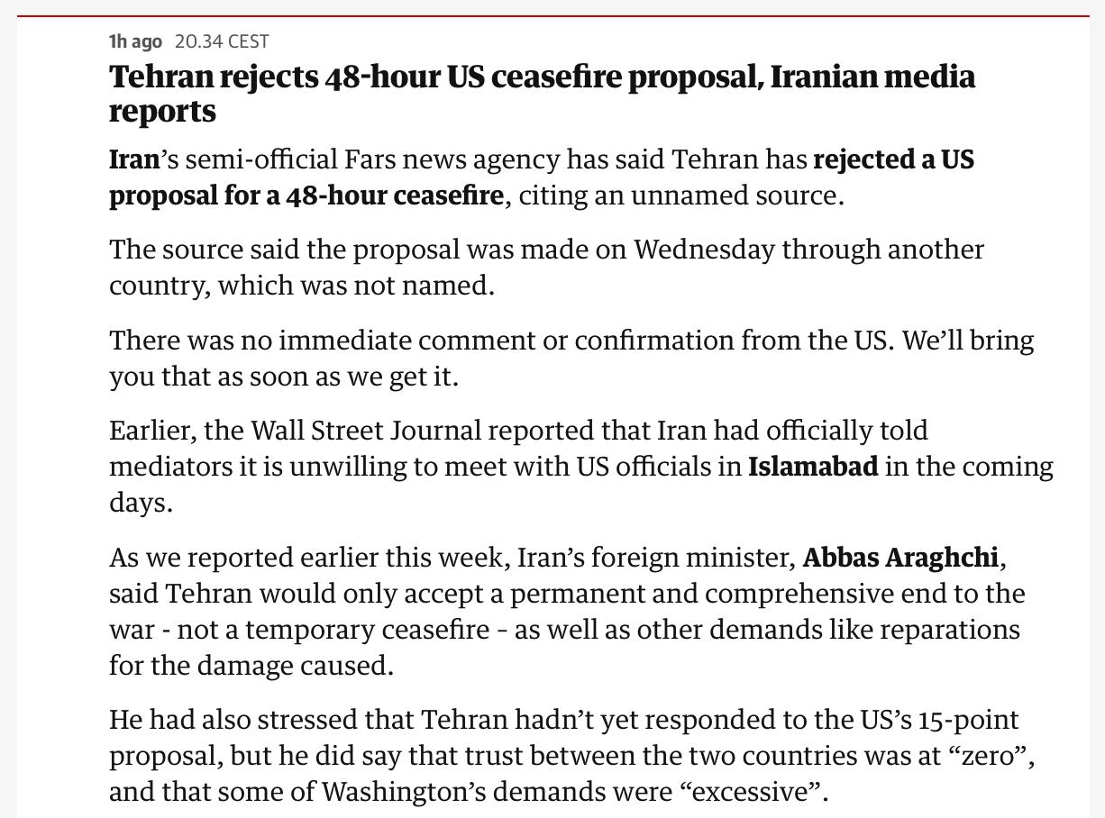 Далее планка была опущена до просто ликвидации традиционного военного потенциала. И в конце стали обозначать целью открытие Ормузского пролива силовым путем, а финальным вариантом уже стали “успешные переговоры” по открытию Ормуза.