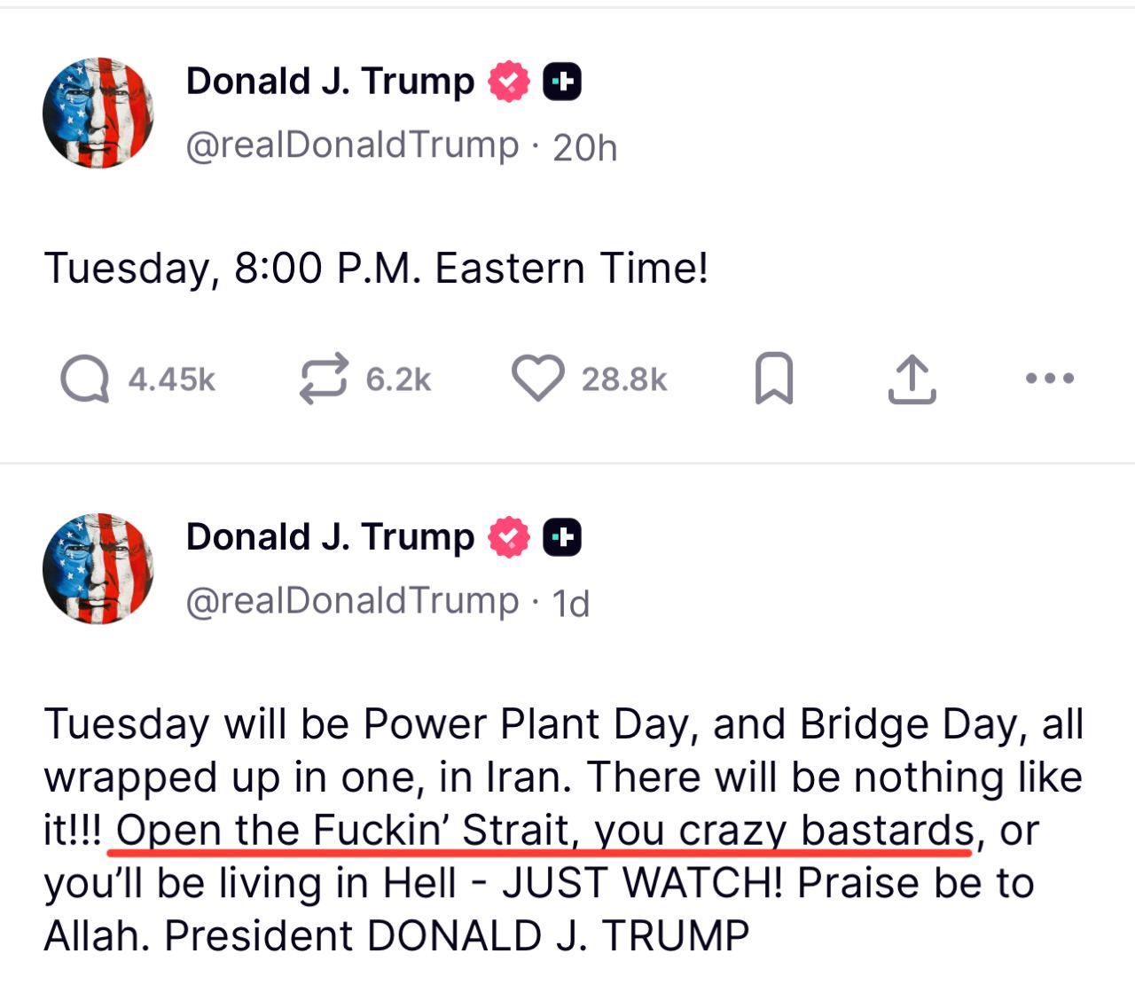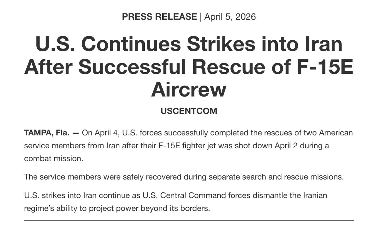Командование и управление Корпуса стражей исламской революции (КСИР) в настоящее время уничтожается — их возможности для запуска ракет и беспилотников резко сокращены, а оружейные заводы разрушены. Никогда в истории войн противник не нёс таких колоссальных потерь за столь короткое время. Пока всё это происходит, Америка побеждает как никогда прежде.