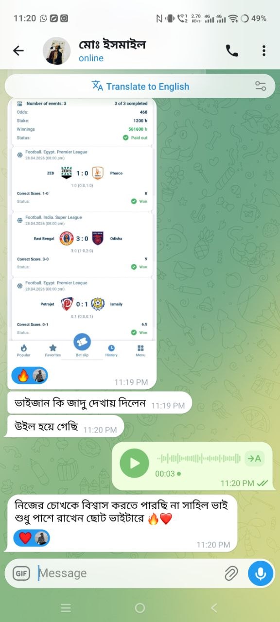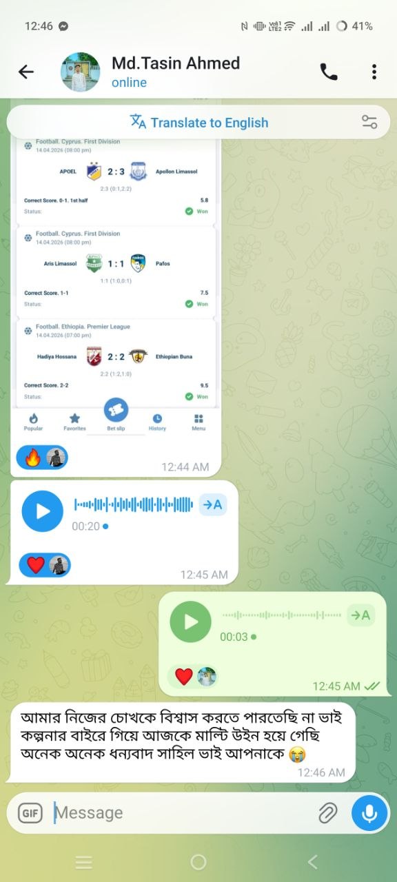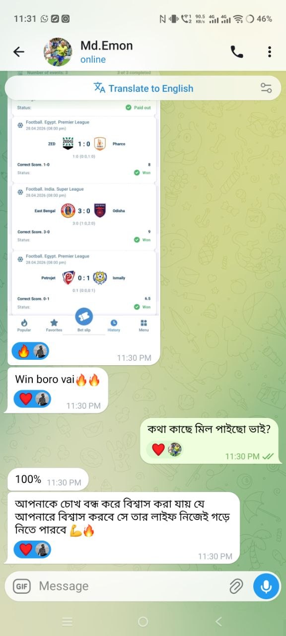 তারা রিস্ক নিয়ে নিজের জীবনের লস টা পুষাই নিয়েছে। যারা যারা ওদের সাথে উইন এর সঙ্গী হতে চান তারা আমাকে ইনবক্স করবেন।💯