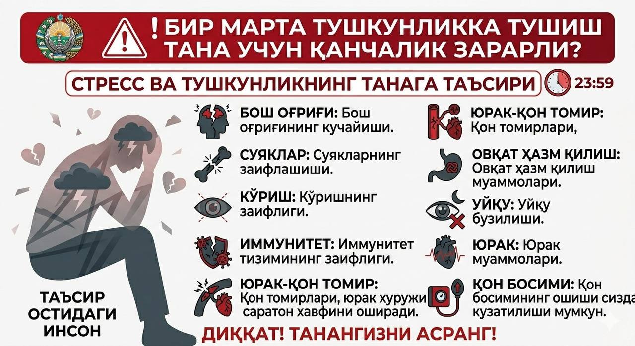Сиз билмайсиз стресс ва тушкунлик танамиз учун қанчалик таъсир қилиши ҳақида батафсил тўхталиб ўтамиз!