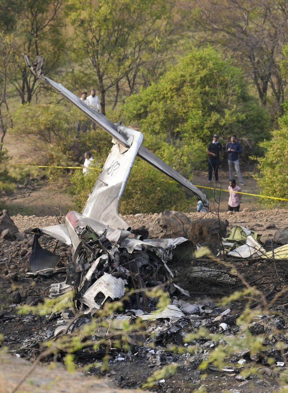 🇮🇳Частный самолет Bombardier Learjet, считающийся одним из самых безопасных в мире для перевозки VIP-персон, разбился в поле неподалеку от города Махараштра, Индия.