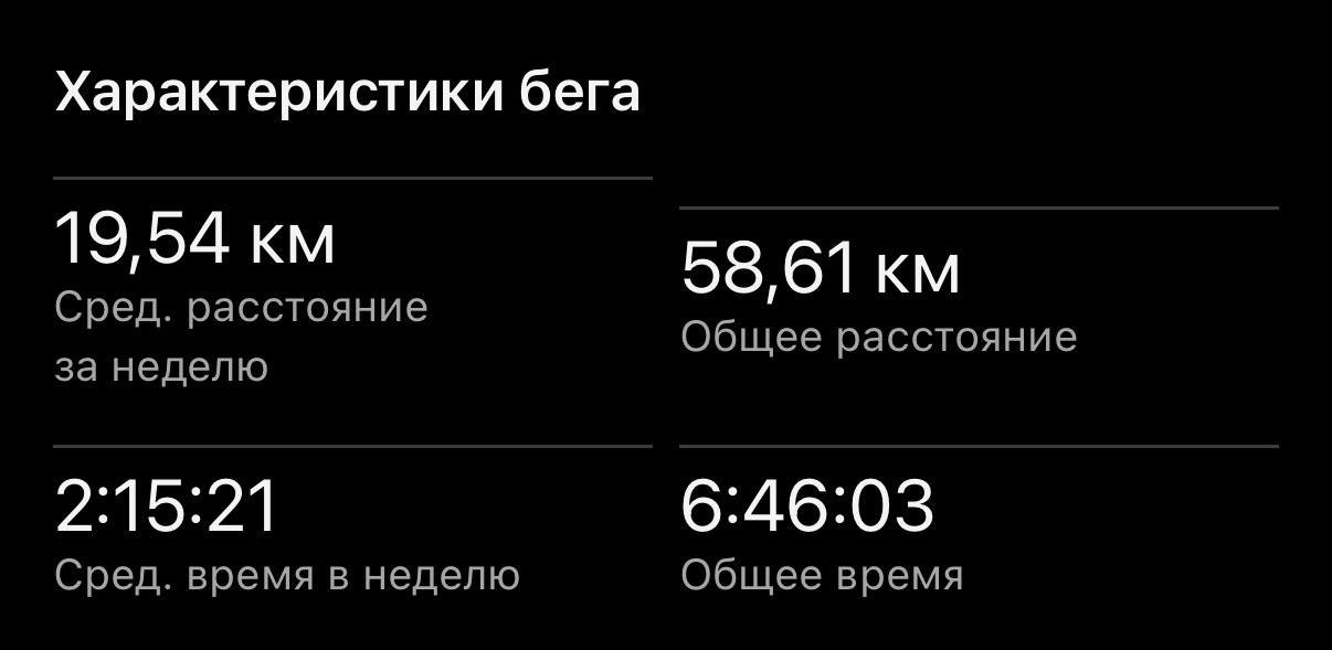 ℹ️ Честно, никогда не бегал такие дистанции, хотя в плане спорта и активности, в жизни с этим проблем не было. Есть вероятность что ближе к 30 свистанет фляга и будет подготовка к триатлону, но пока еще есть запас времени заработать на это деньжат и потом заниматься тем, чем просто буду хотеть.