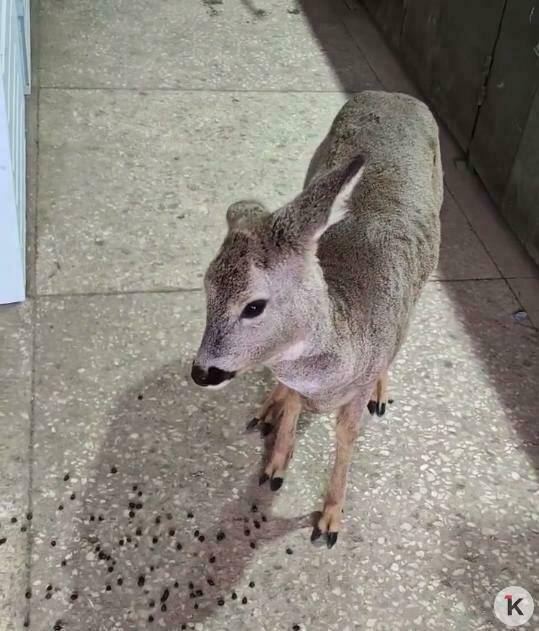 Житель Калининграда нашел за городом замерзающую косулю и сначала приютил ее у себя на работе — в мастерской на улице Нарвской