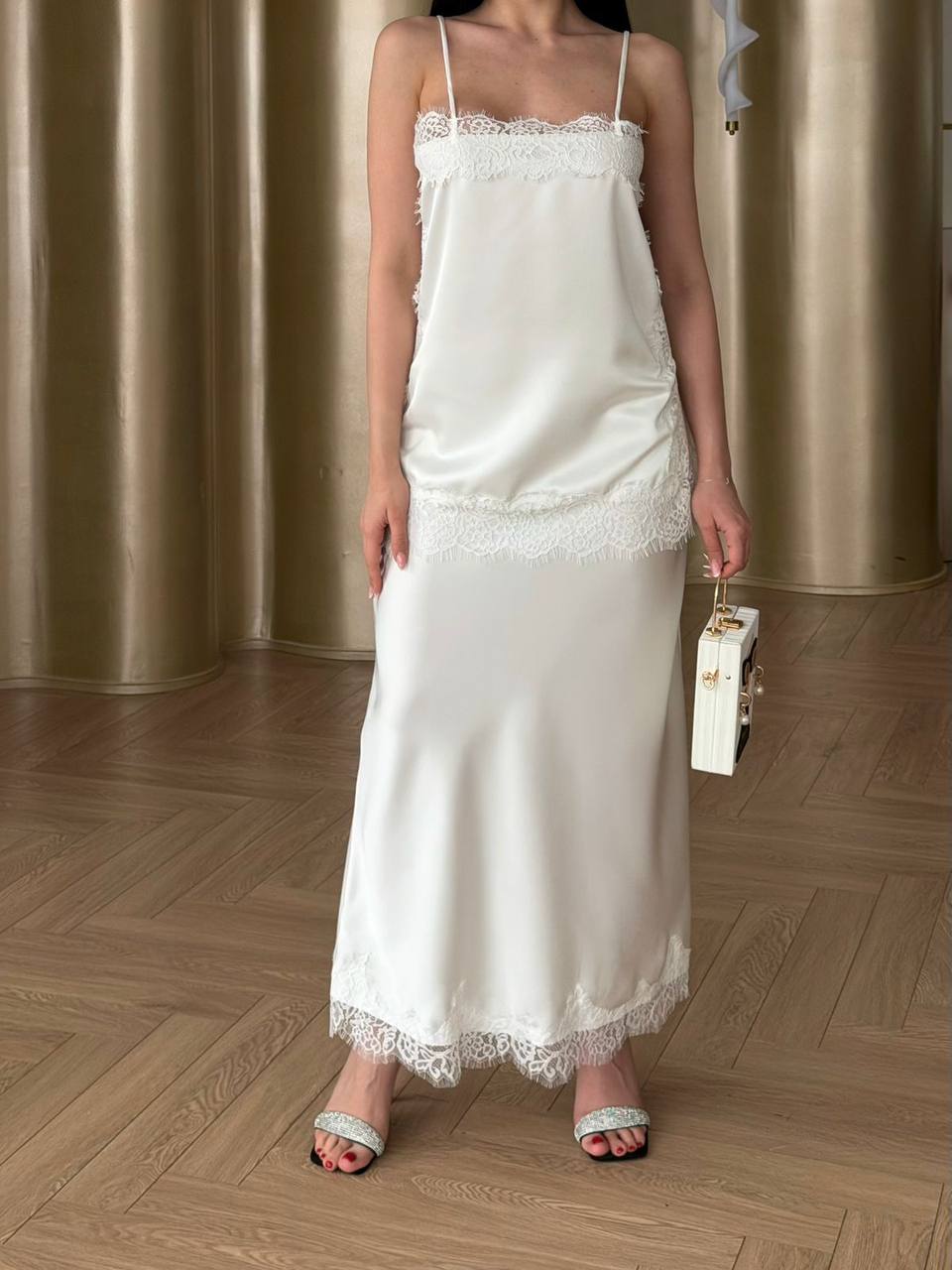 ⚜️Элегантные атласные костюмы, длина: топ 75см, юбка 95 см