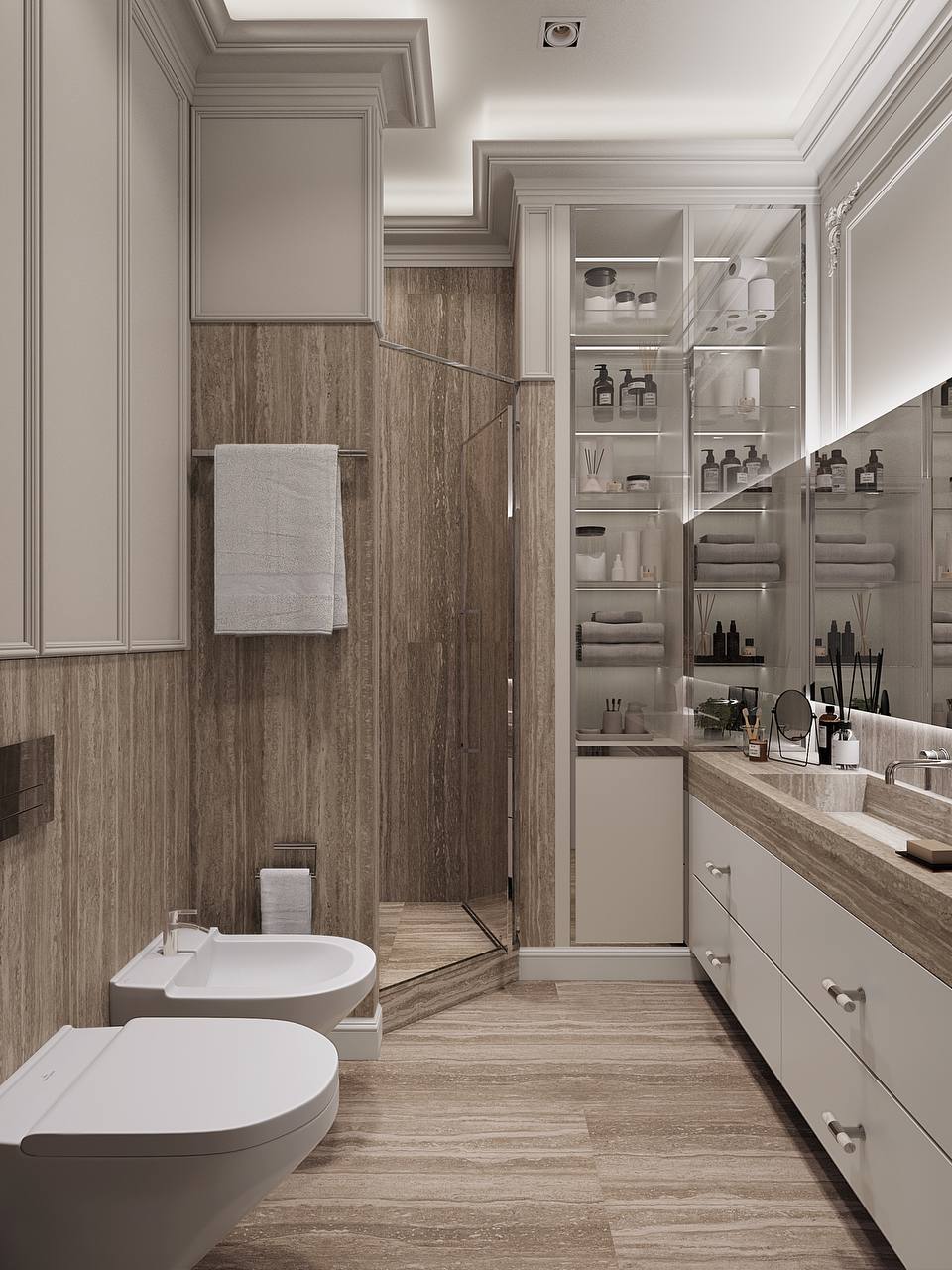 Отдельного внимания заслуживает декоративная ниша с подсветкой — решение, продиктованное планировкой.
