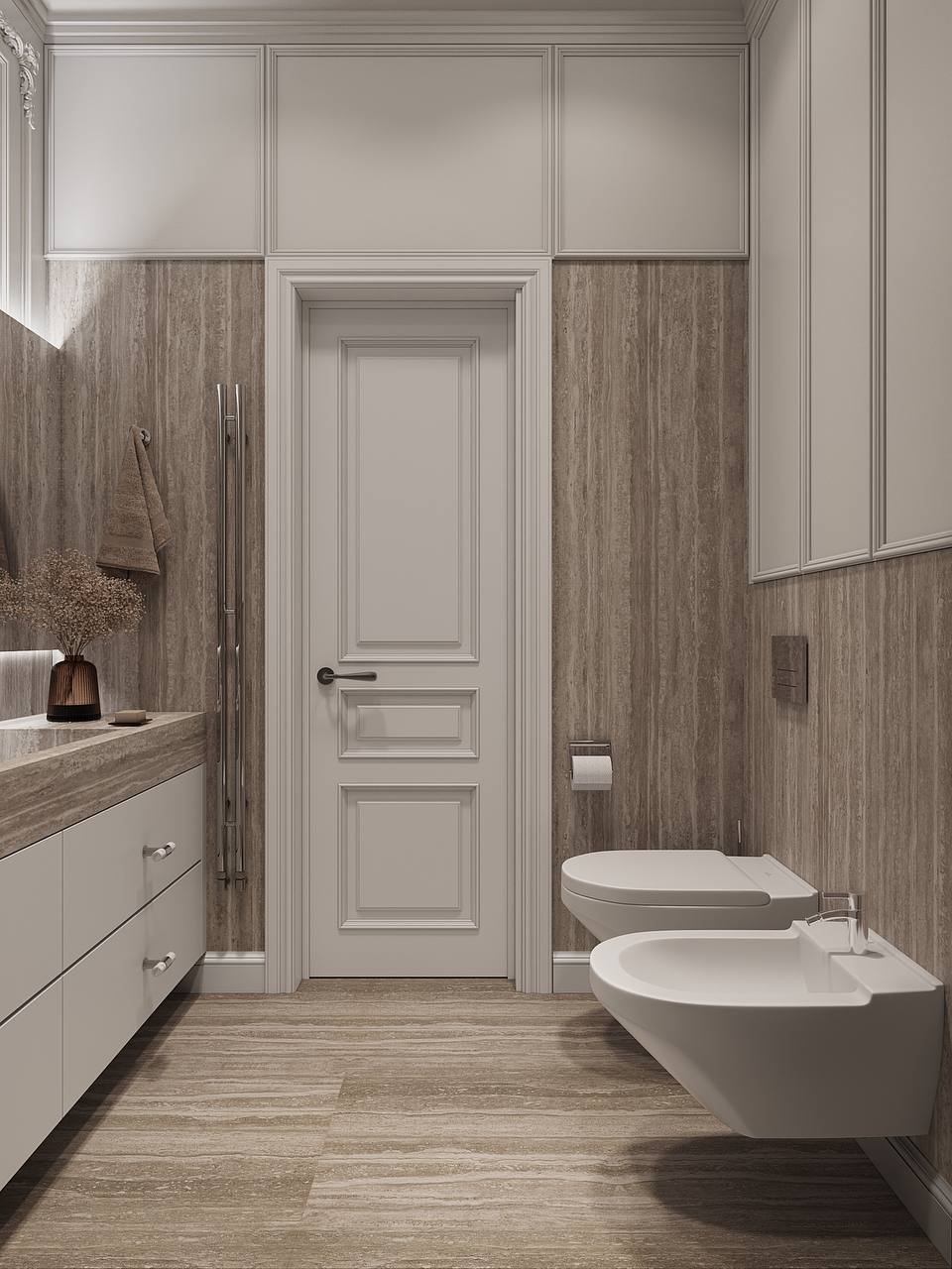 Текстиль играет важную роль: шторы в тон стен смягчают пространство, а мягкие фактуры усиливают ощущение уюта.