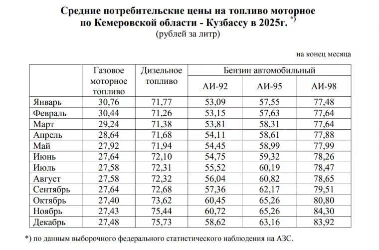 На сколько подорожал за год бензин в Кузбассе.