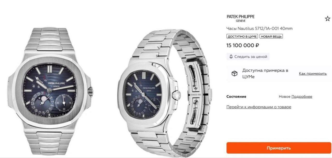При обысках в банковской ячейке обнаружили 12 элитных часов, десять из которых конфисковали. Среди них Patek Philippe Nautilus за 15 млн, четыре Rolex (в том числе Day-Date из розового золота за 4+ млн и Yacht-Master из белого золота), Audemars Piguet Royal Oak за 5,4 млн, Chanel Monsieur за 3 млн и несколько моделей Ulysse Nardin и Bvlgari.