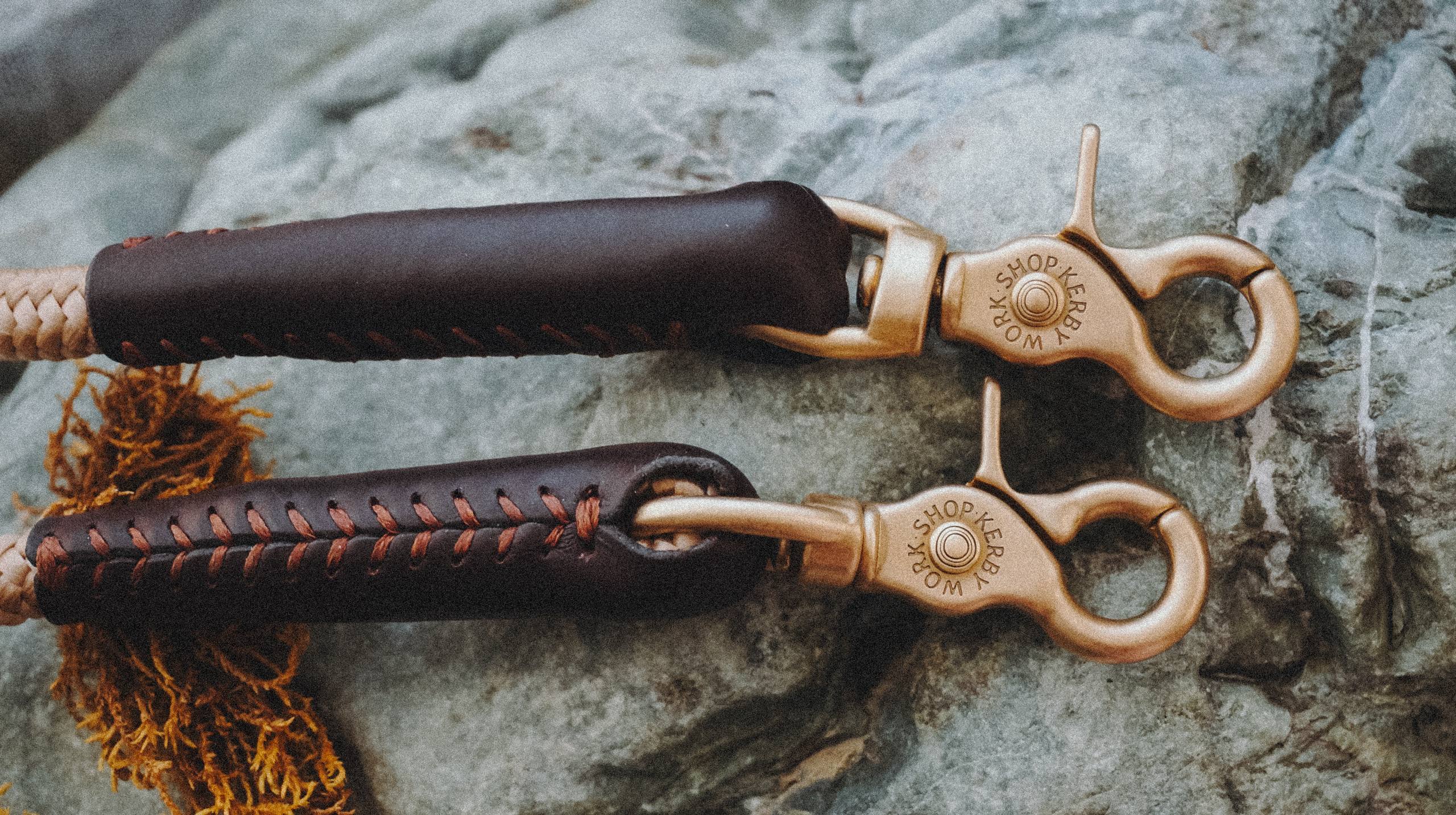 Поэтому сейчас, когда у нас есть возможность снова делать те самые поводки — с латунными карабинами, надёжным кордом и уже в кожаной отделке — мы это делаем.