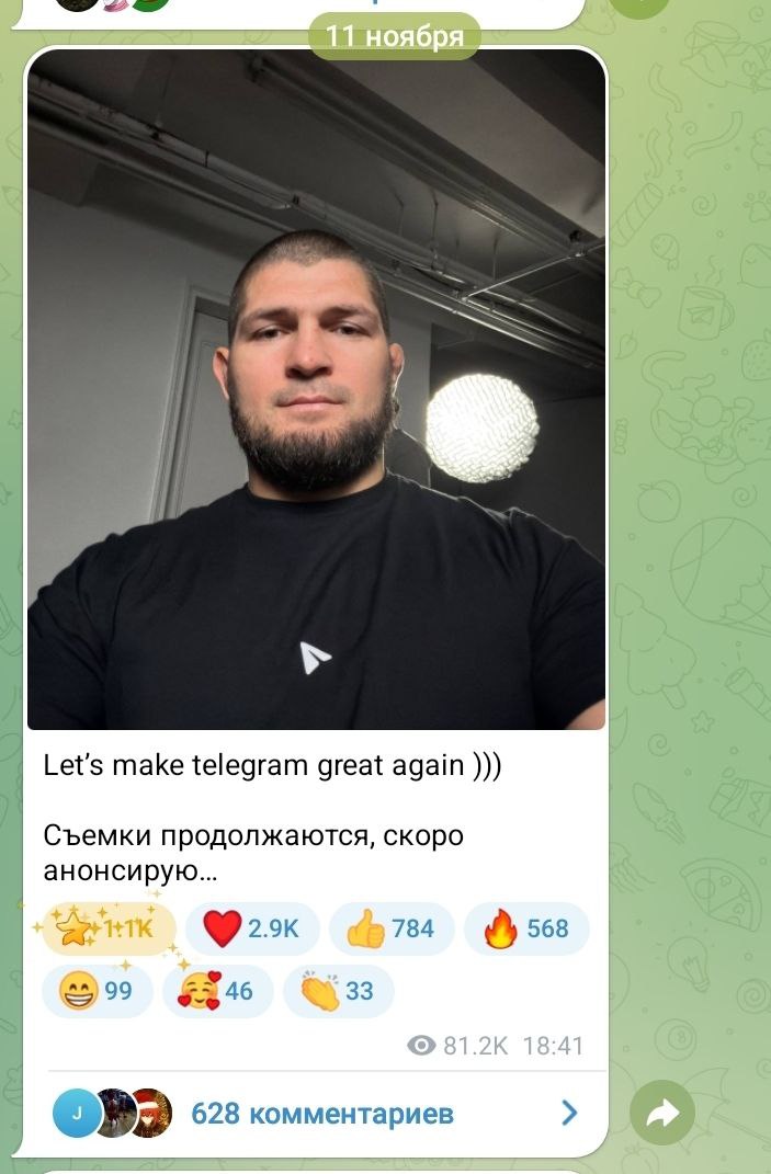 Хабиб Нурмагомедов выпустил пост в своем канале, 11.11.2025г и прикрепил фото в мерче Telegram