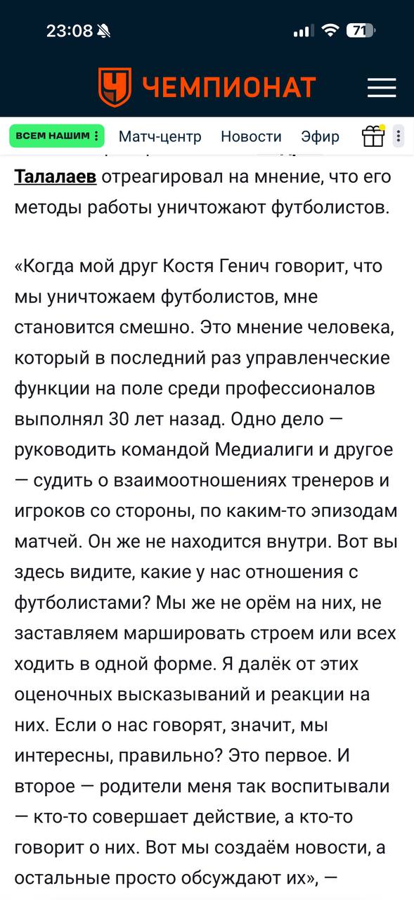 Интересно, где и когда я говорил подобное про «Балтику» и методы управления Талалаева? Есть пруфы? Кто пытается нас стравить?!!!