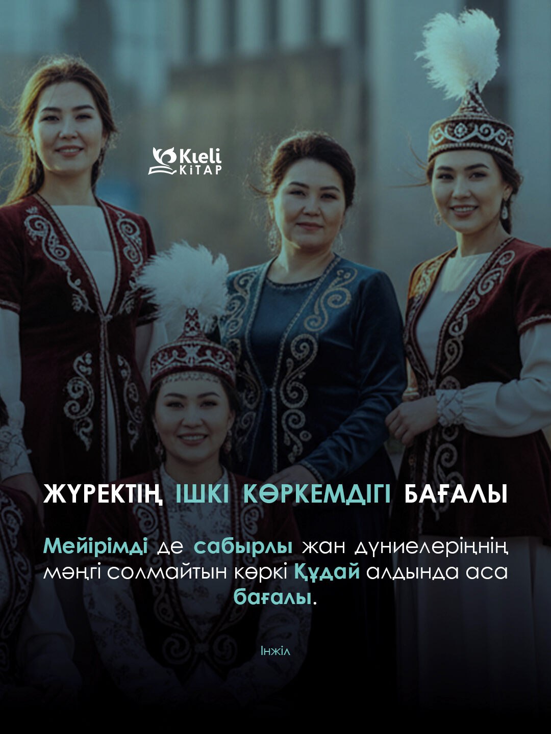 Мейірімді де сабырлы жан дүниелеріңнің мәңгі солмайтын көркі Құдай алдында аса бағалы. - 1 Петр 3:4