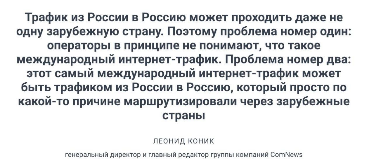 Россиян окончательно отрежут от мира, предупредил бывший советник президента Герман Клименко: по его словам, зарубежный интернет может подорожать до 6000 рублей за 1 ГБ, платить такие суммы смогут лишь 20–30% пользователей, а остальным придётся отказаться от западных сайтов. Сам Клименко считает, что цель таких мер — резко снизить потребление «нелегального контента» и перекрыть доступ к заблокированным соцсетям.