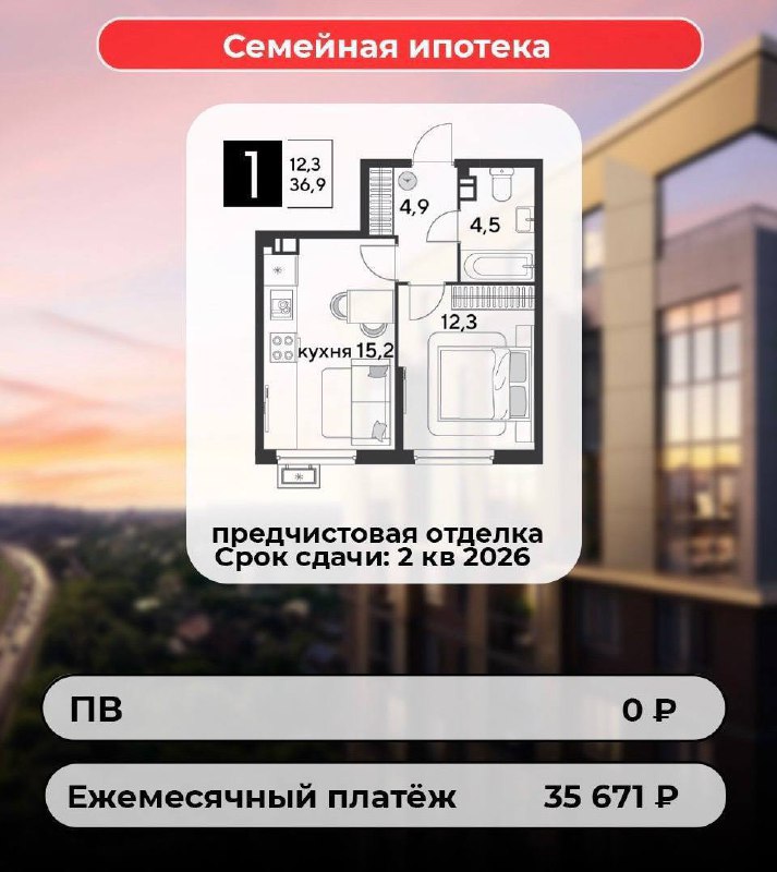 1⃣ лот 1 комн квартира 8 500 770 руб, площадь 35 кв м , ежемесячный платеж 40 737 руб . СКИДКА - 3 145 230 руб