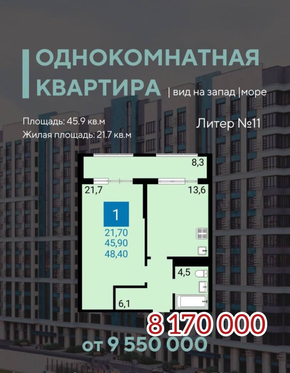 В ЖК остались квартиры от 10 миллионов, однокомнатные