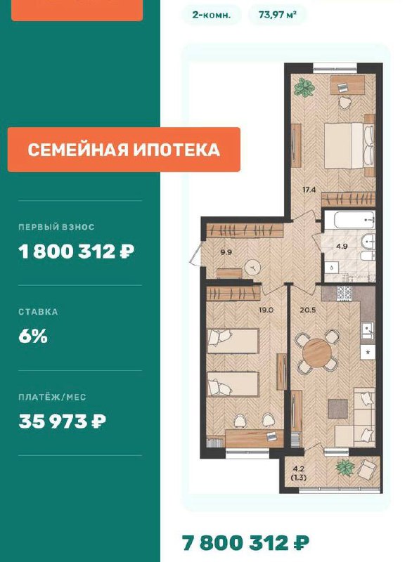 - Минимальный первоначальный взнос на 2-кв квартиры