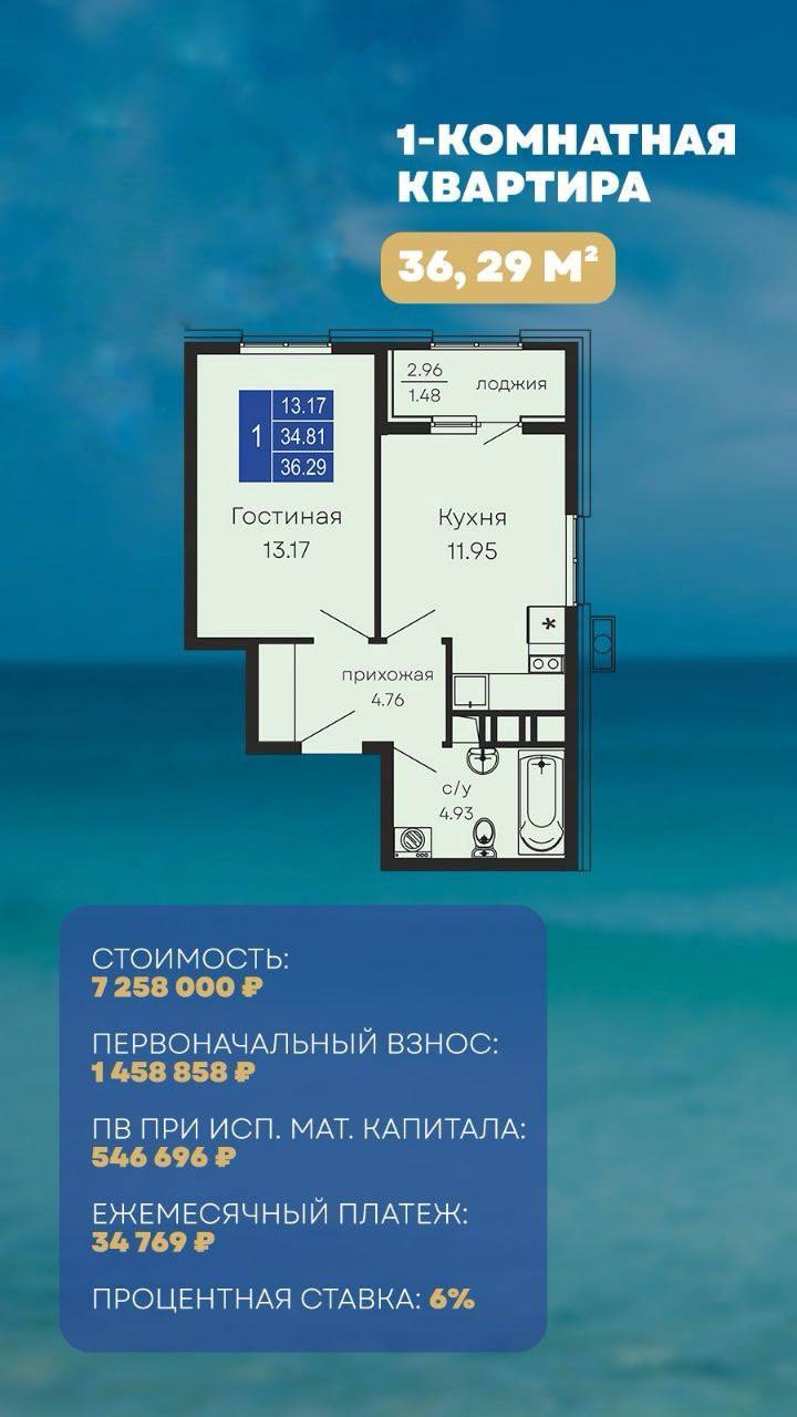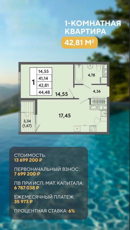 Ипотечный платеж «в районе 35 000 ₽?» Сделаем! Ниже три варианта 1-комнатных квартир с желаемым ежемесячным платежом.