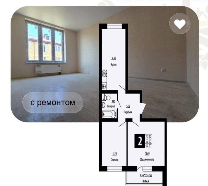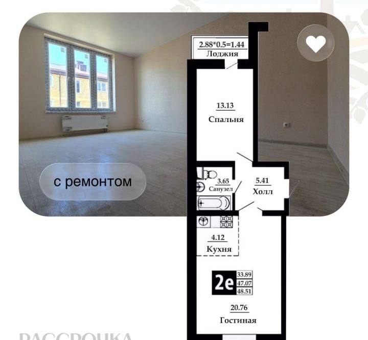 * 1К квартира 44,48 м² =