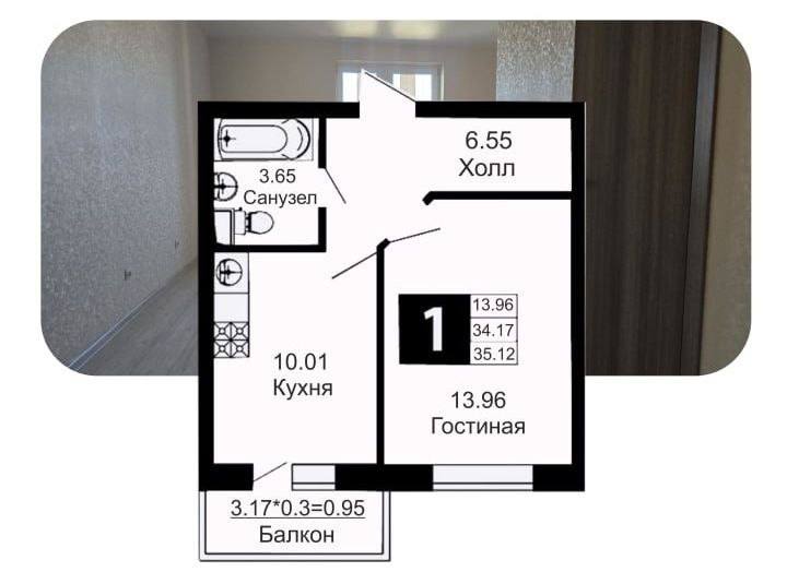 * 1К квартира 36,29 м² =