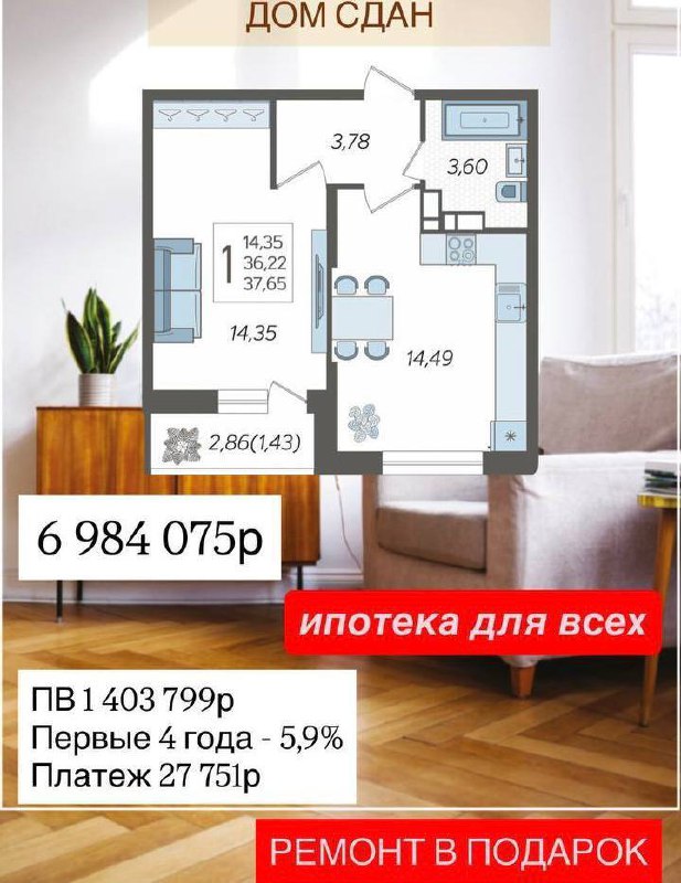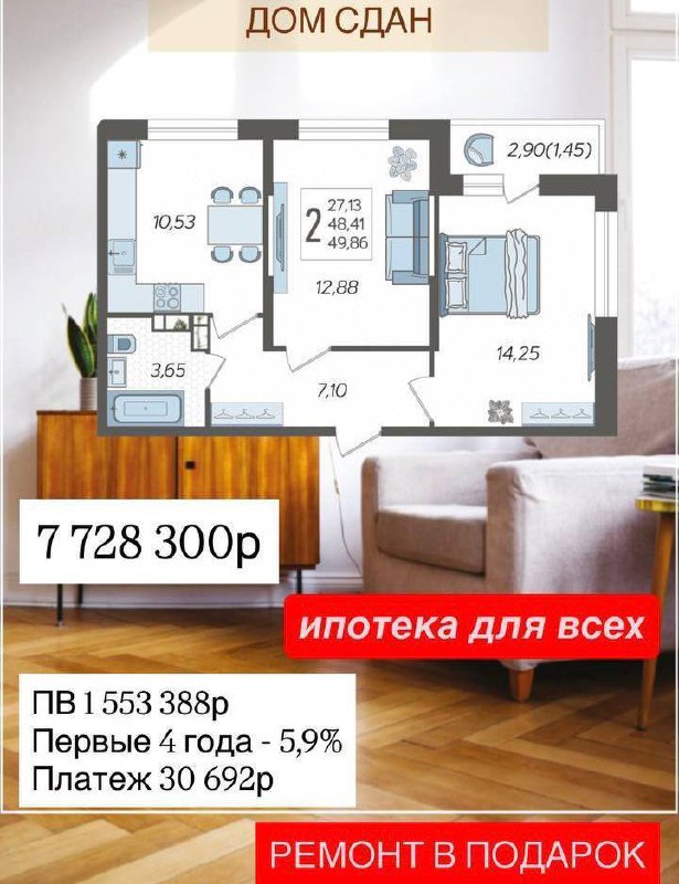 ➖ а также квартиры с ремонтом.