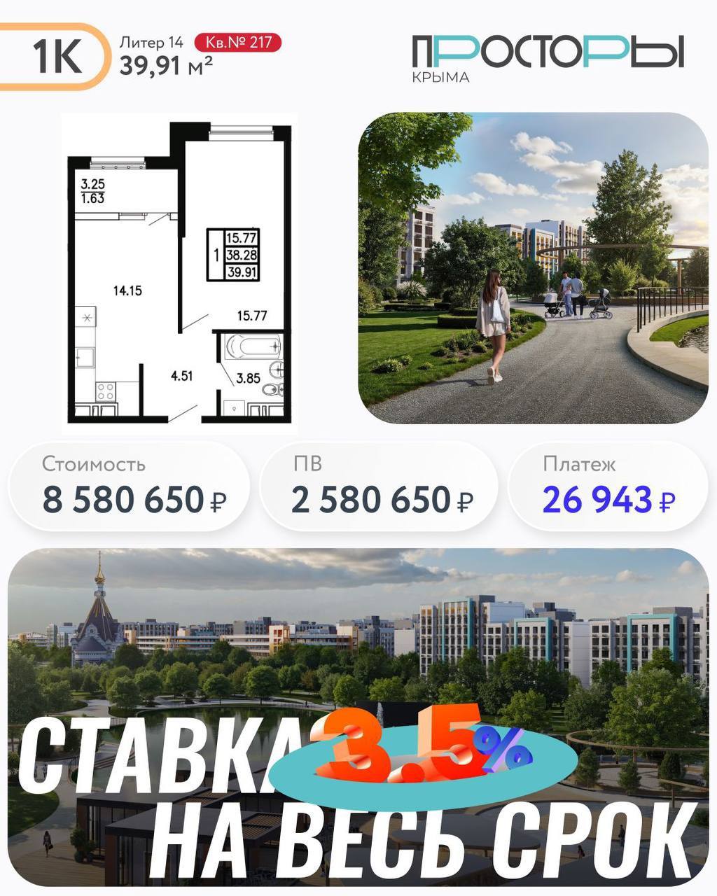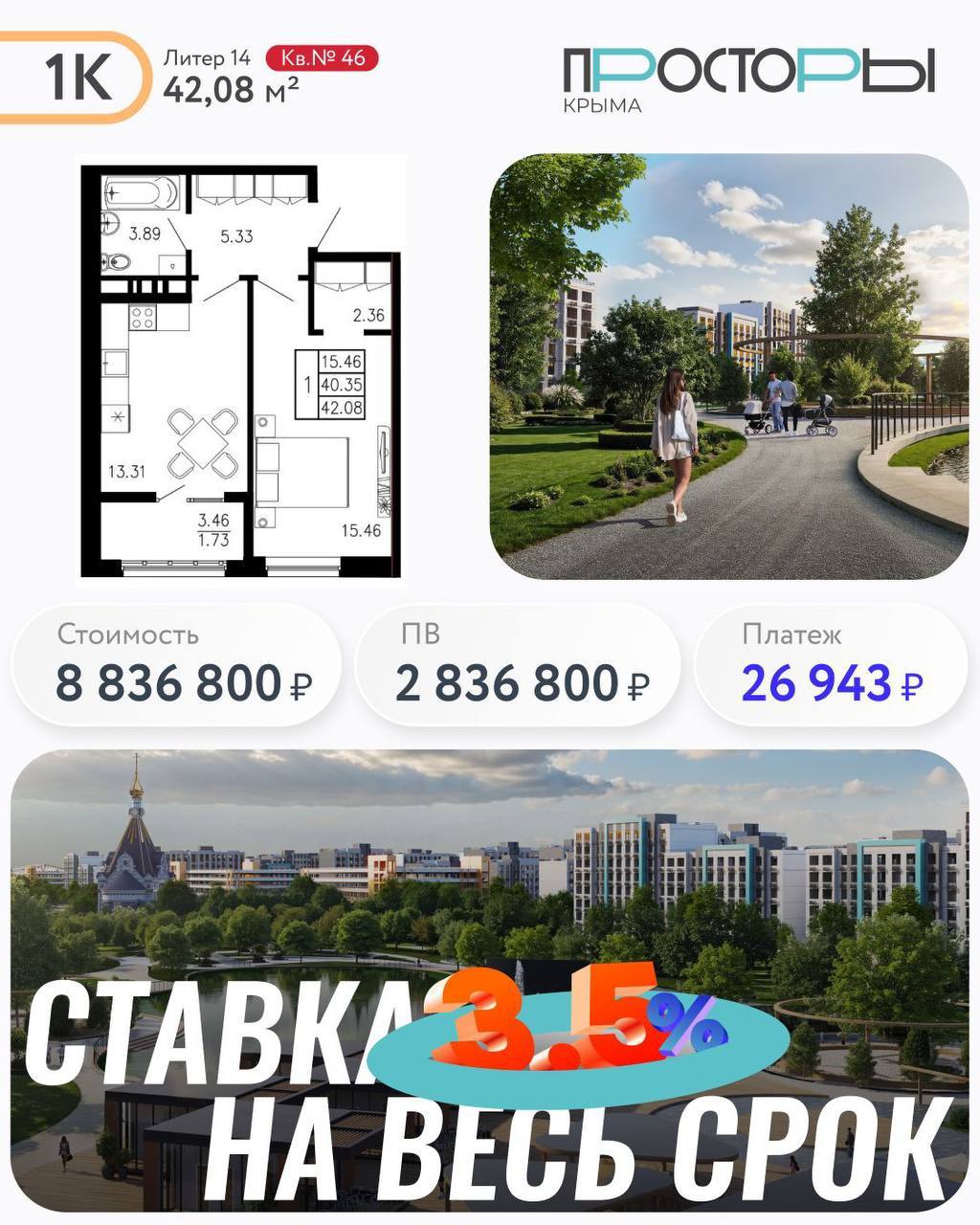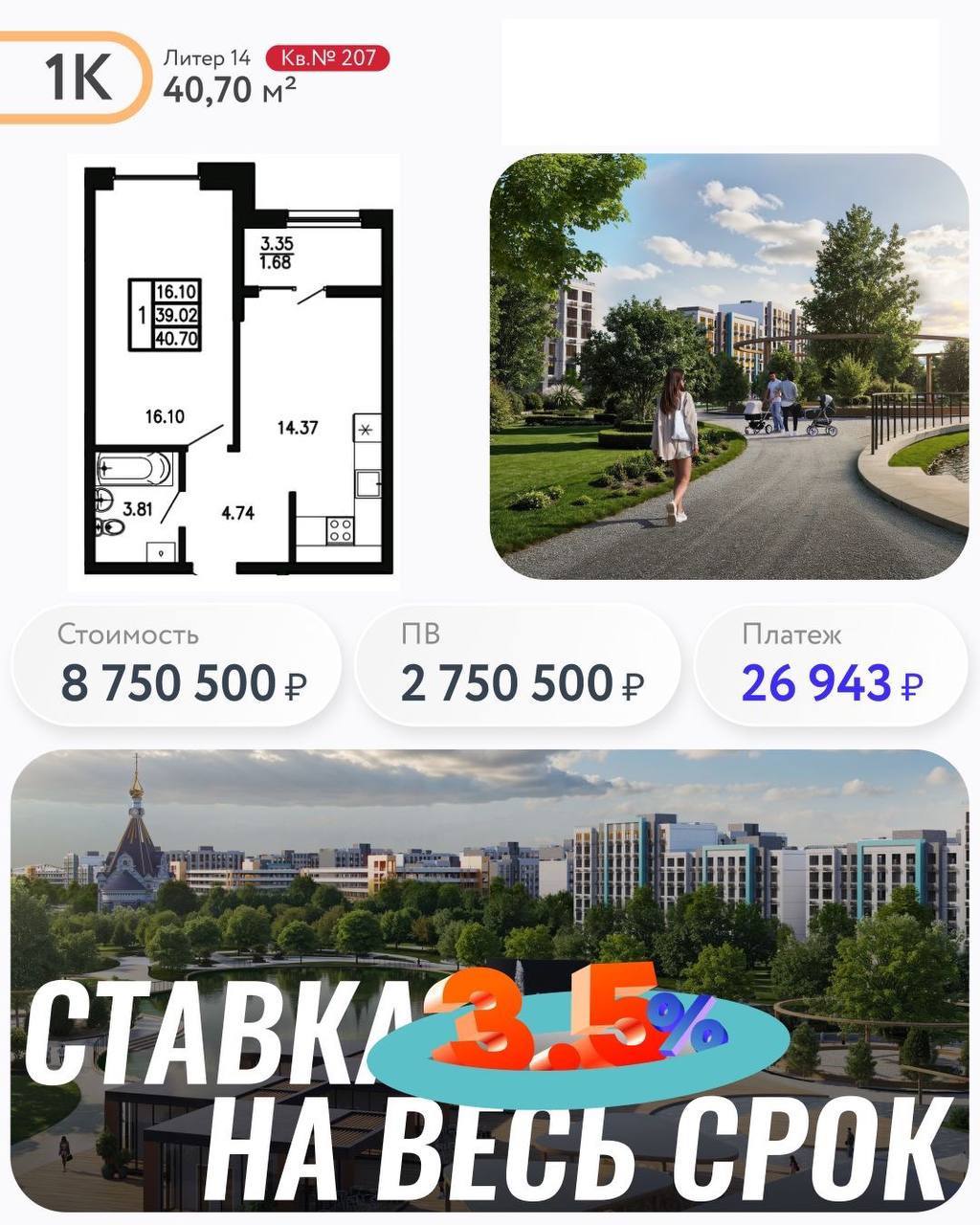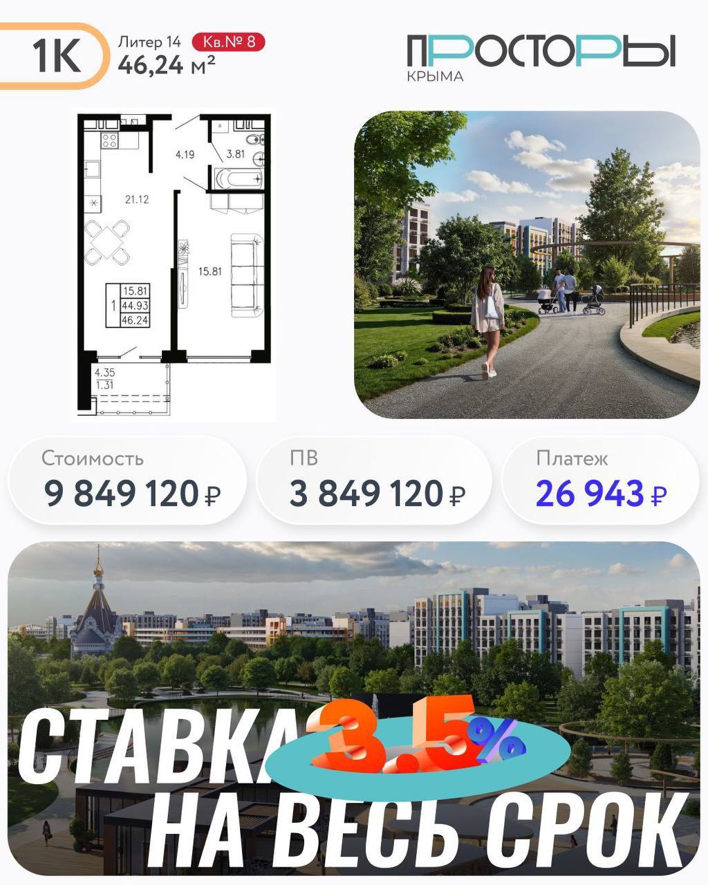 Семейная ипотека! Ставка 3,5% на весь срок! Успевайте
