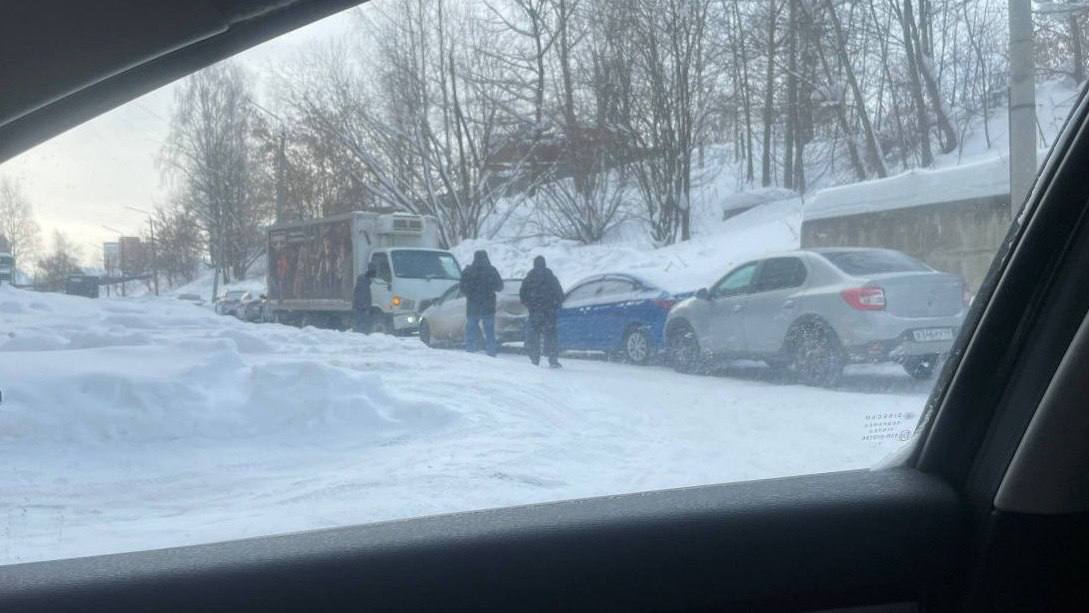 Увернулся от встречной фуры и владелец регистратора на загородной трассе. Он вовремя заметил, что грузовик занесло, и успел съехать на снежную обочину.