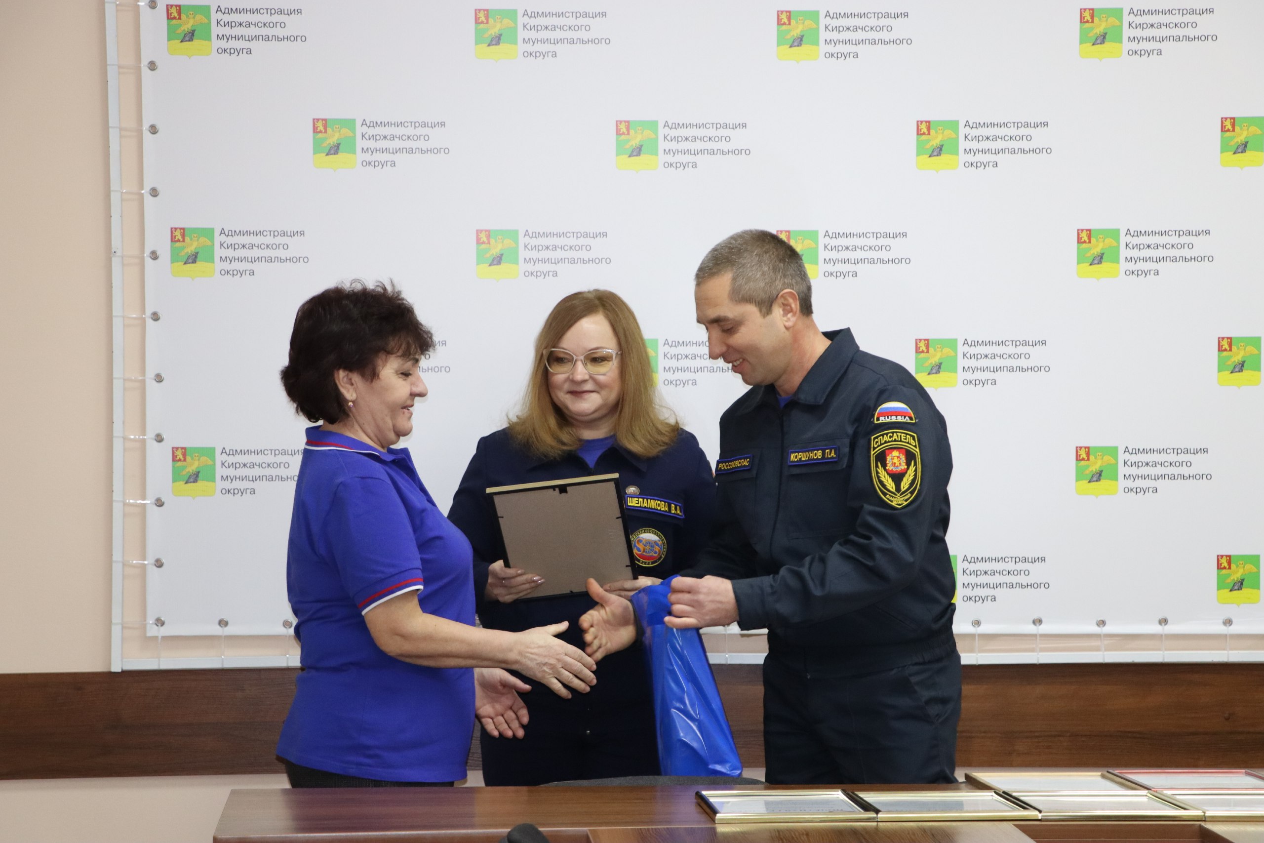 Благодарностями и памятными подарками были отмечены оперативные дежурные ЕДДС Киржачского округа: Л.И. Трактова, С.А. Резчикова, И.В. Сизова, О.Г. Живоглядова, О.Ю. Ионова, А.С. Жильцова, С.А. Коренкова, Е.А. Графова.